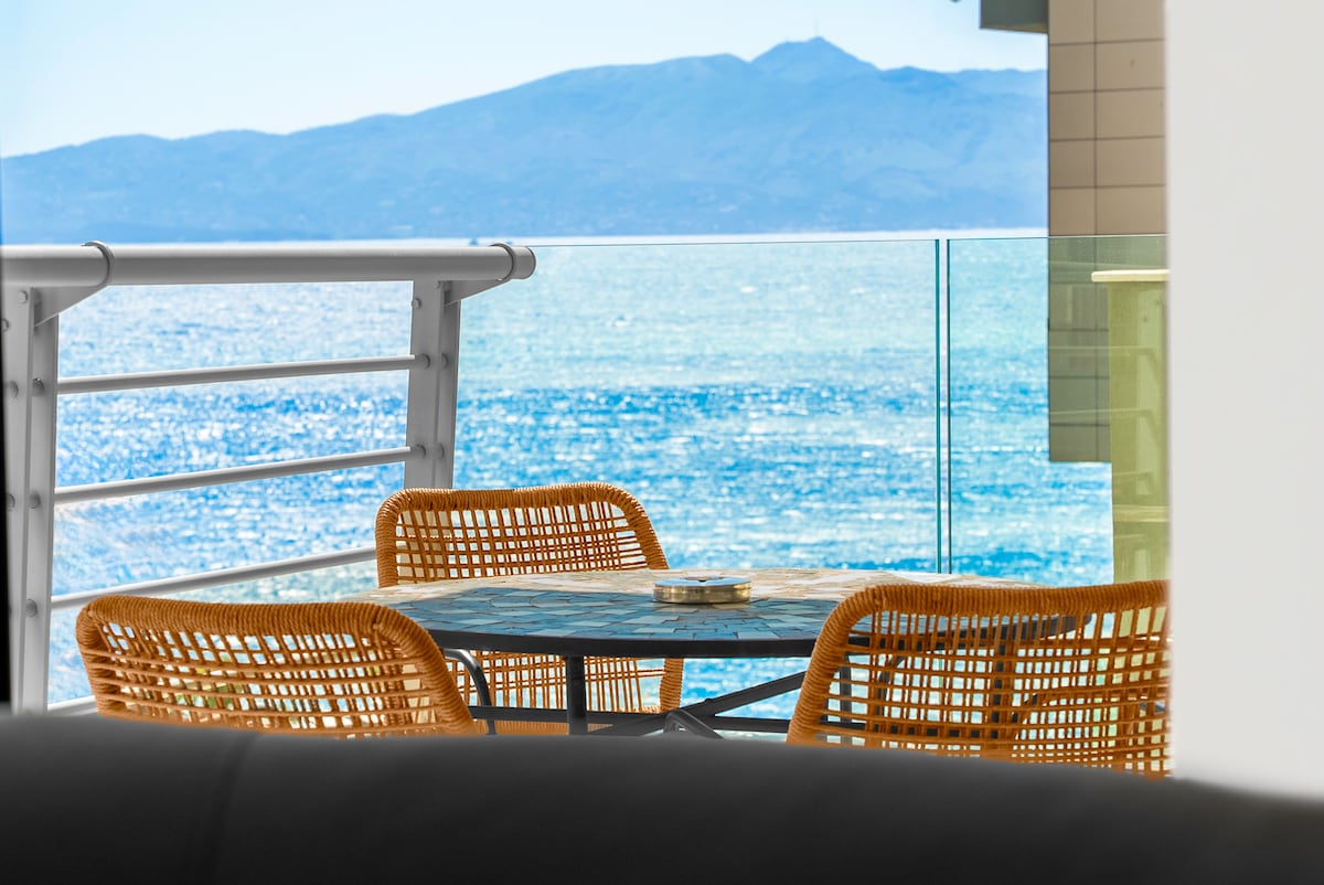 Modern Seaside Apartment – Prime Location & Stunning Views Stay in a brand-new apartment just 500m from the city center, 5 minutes from the public beach, and 30m from the coastal promenade. Enjoy breathtaking sea and city views from two private balconies. The space includes a spacious living room, fully equipped kitchen, cozy dining area, two comfortable bedrooms, and a modern bathroom. Perfect for a relaxing getaway or a business trip!