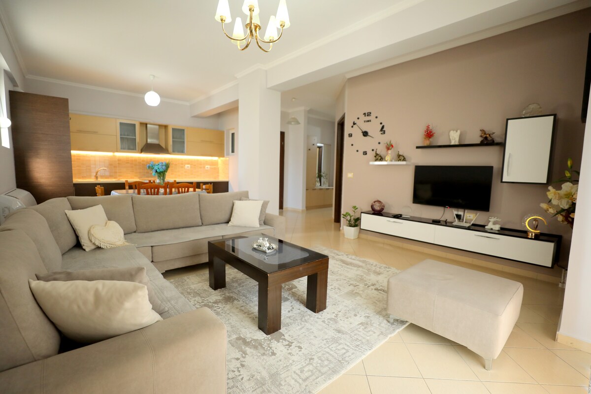 Our spacious apartment is just a 5-minute walk from Saranda’s beaches, restaurants, shops, and nightlife. Located in the center of the city, it’s the perfect base for exploring the Albanian Riviera. The space includes a fully equipped kitchen, fast Wi-Fi, flat-screen TV, A/C, washing machine and more. Everything you need for a comfortable and convenient stay. Enjoy the private balcony with sea view – the perfect spot for your morning coffee or a relaxing sunset. Bus station is 2 minutes away.