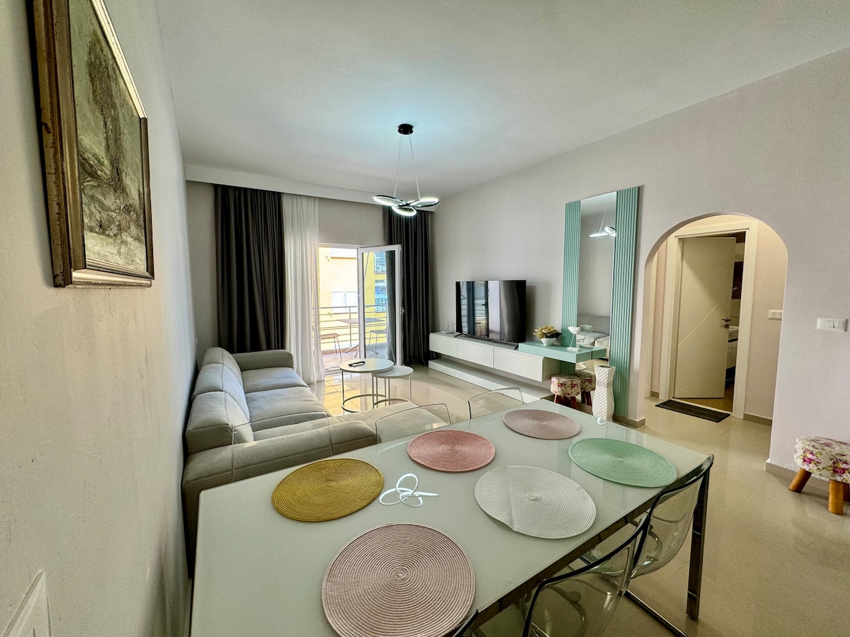 My Apartment is spacious and very well equipped. Here you will find a private entrance,private parking ,clean and very familiar place. The apartment has 1 bedroom ,1bedroom/livingroom ,kitchen and 1 bathroom and a dedicated gym space. Here you will find an spacious outdoor private space,private parking. We are near Saranda Center, close to Lekursi Castle and near of many restaurant ,shops ,cafes etc
