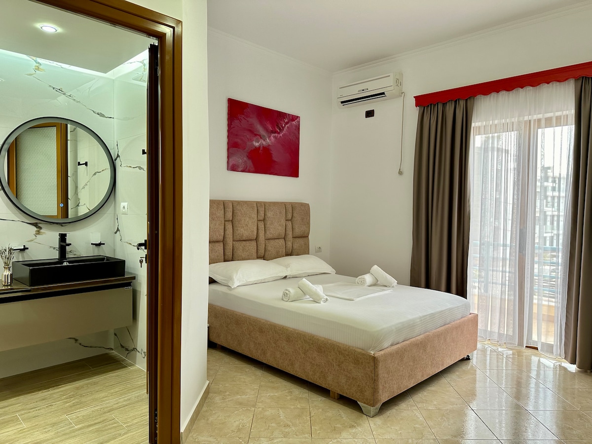 Beachfront Room with Side Seaview Located just a few steps from Sarandë’s best beaches, this charming beachfront room offers a serene escape with a beautiful side seaview of the Ionian Sea. Enjoy the calming breeze from your private balcony, unwind in comfort with modern amenities, and take advantage of being just moments away from the city’s vibrant coast. Perfect for those looking to relax by the sea while exploring the heart of Sarandë.