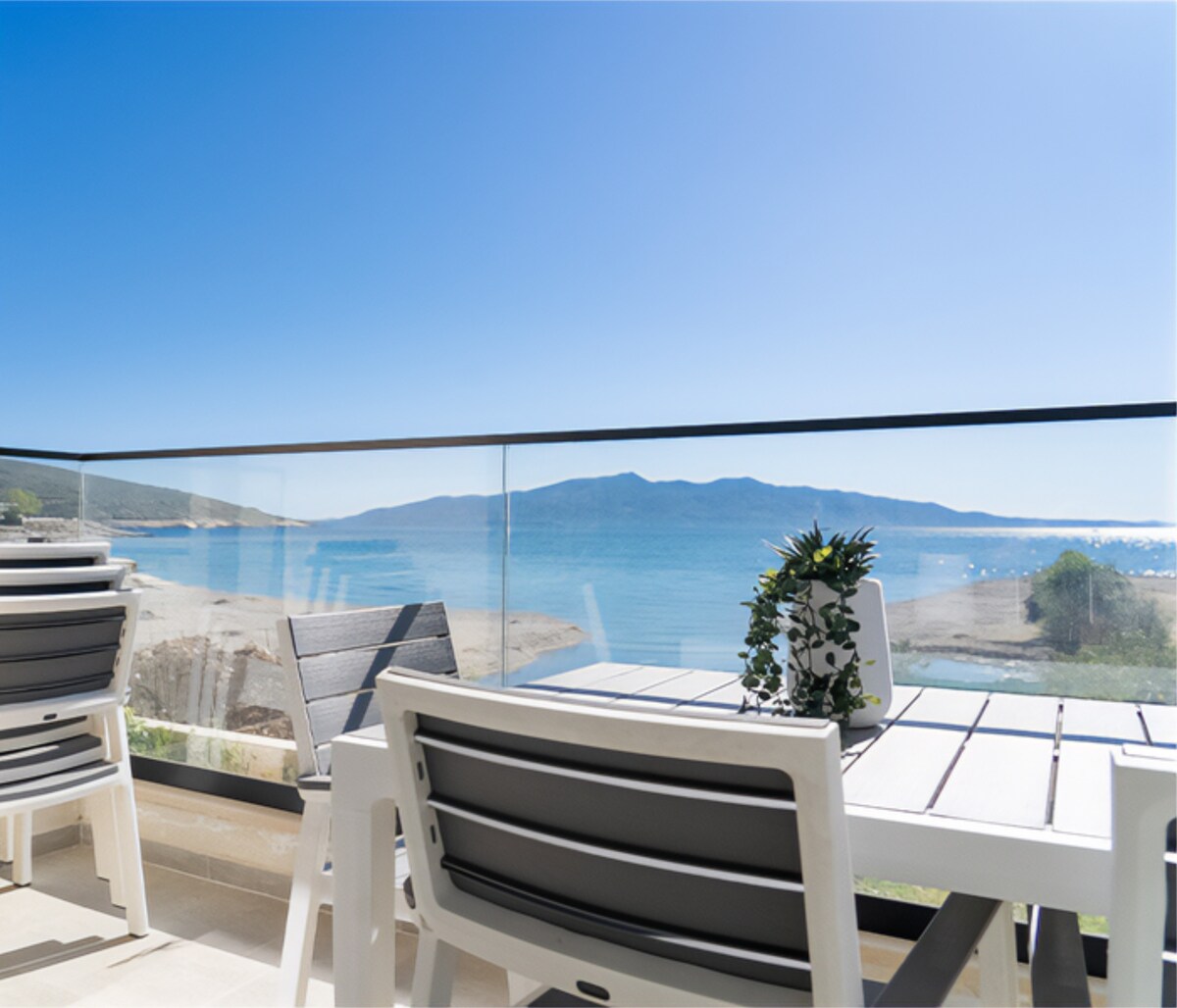 Beachfront luxury apartment located in the heart of Saranda ,Albania. With its central location, you'll have easy access to all the amenities you need for a memorable vacation, including restaurants, cafes, and shops. The apartment is beautifully designed and fully equipped with everything you need to make yourself at home. You'll find a comfortable living room, a fully equipped kitchen, a relaxing bathroom and a spacious balcony where you can soak up the stunning views of the sea and the city.