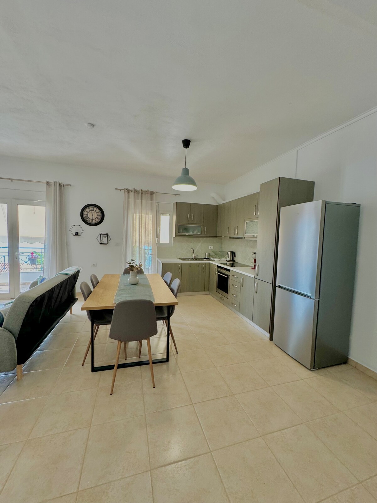 Це стильне помешкання ідеально підходить для перебування груп. Це унікальне помешкання має власний стиль. Тут ви знайдете усе необхідне для гарного відпочинку. У цій новій квартирі ви зможете розслабитися і отримати задоволення від комфорту, який забезпечать якісні меблі та побутові прилади. Усього декілька кроків від будинку і ви опинитеся на чудовому гальковому пляжі Іонічного моря. Квартира знаходиться в районі, де можна відвідати кращі таверни ти ресторани Саранди.