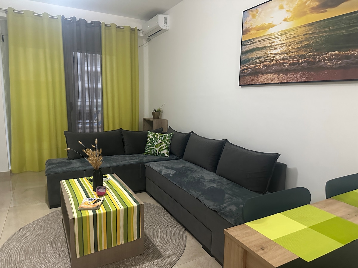Beautiful one bedroom apartment with a big Living room and kitchen in the center of Sarande. Lately renovated with modern furniture and appliances. Beautiful view of the city during day and night. 3 mins away from the beach and the pedestrian walk. Very close to the grocery stores and cloth boutiques. (Note: The building has no functional elevator so be prepared to climb stairs)
