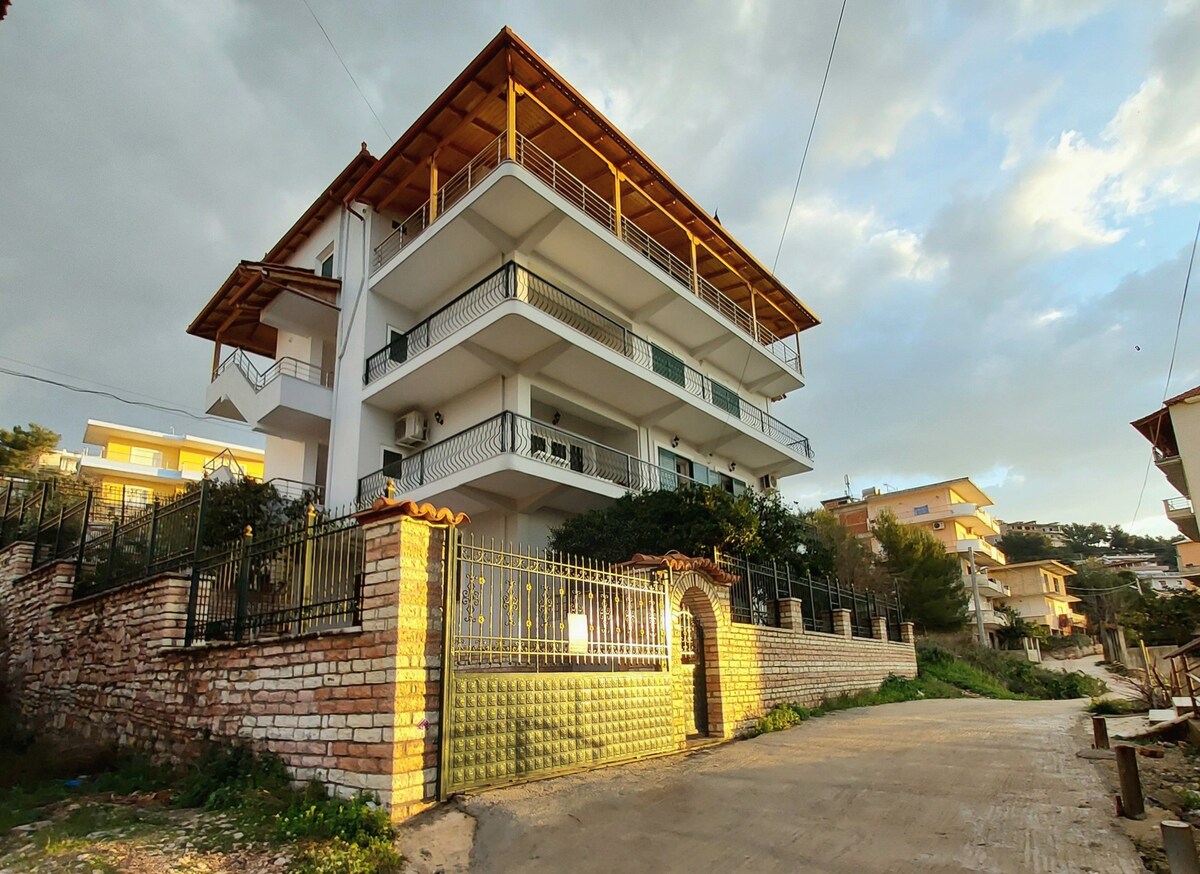 Our unique villa is situated at the Ionian coast of Saranda. Part of a compound of four villas, it offers a wonderful view of the sea with a direct exit to the beach. On the ground floor, there is a large living space with a fireplace and a bathroom. Three double rooms are located in the upper floor, while on the top, there is a bedroom linked to a stunning veranda. Surrounded by a careful gardening touch, our villa becomes the perfect place for those who need a peaceful state of mind.