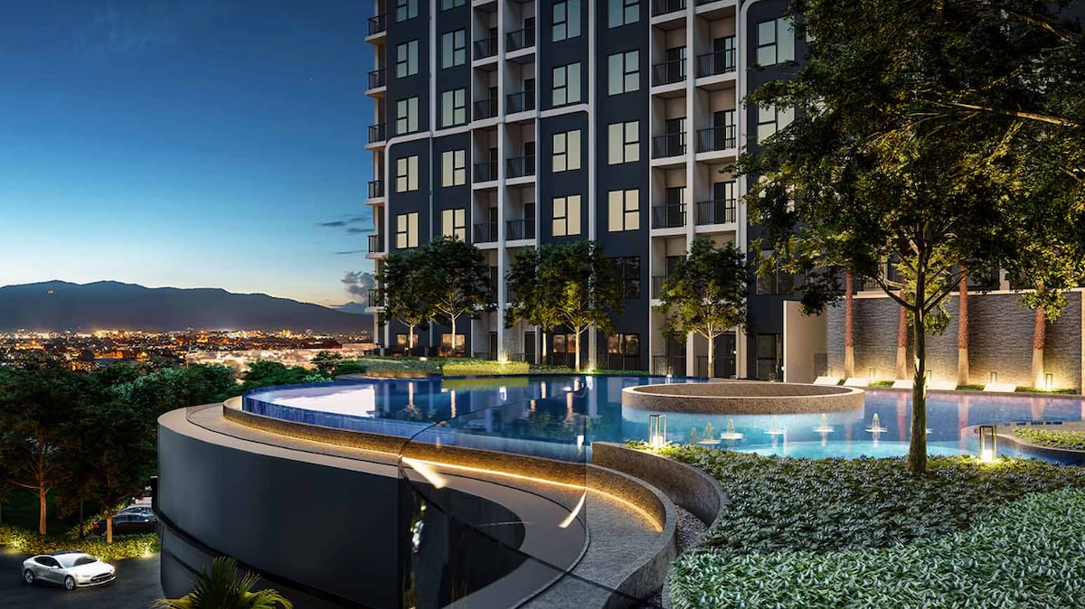在这处独具特色、适合家庭入住的房源中留下美好回忆。 —靠近长康路夜市 —便捷的地理位置 —楼顶豪华的超长无边游泳池 —远眺素贴山山景 —豪华二卧一厅一卫47平米 —齐全的厨房设备 —免费WIFI 、游泳池、健身房、汗蒸房 楼下超市便利店 5分钟坐出租车至古城区 15分钟坐出租⻋到机场,公寓⻔口就有公共汽车,嘟嘟⻋和红⾊双条车,也可叫grab