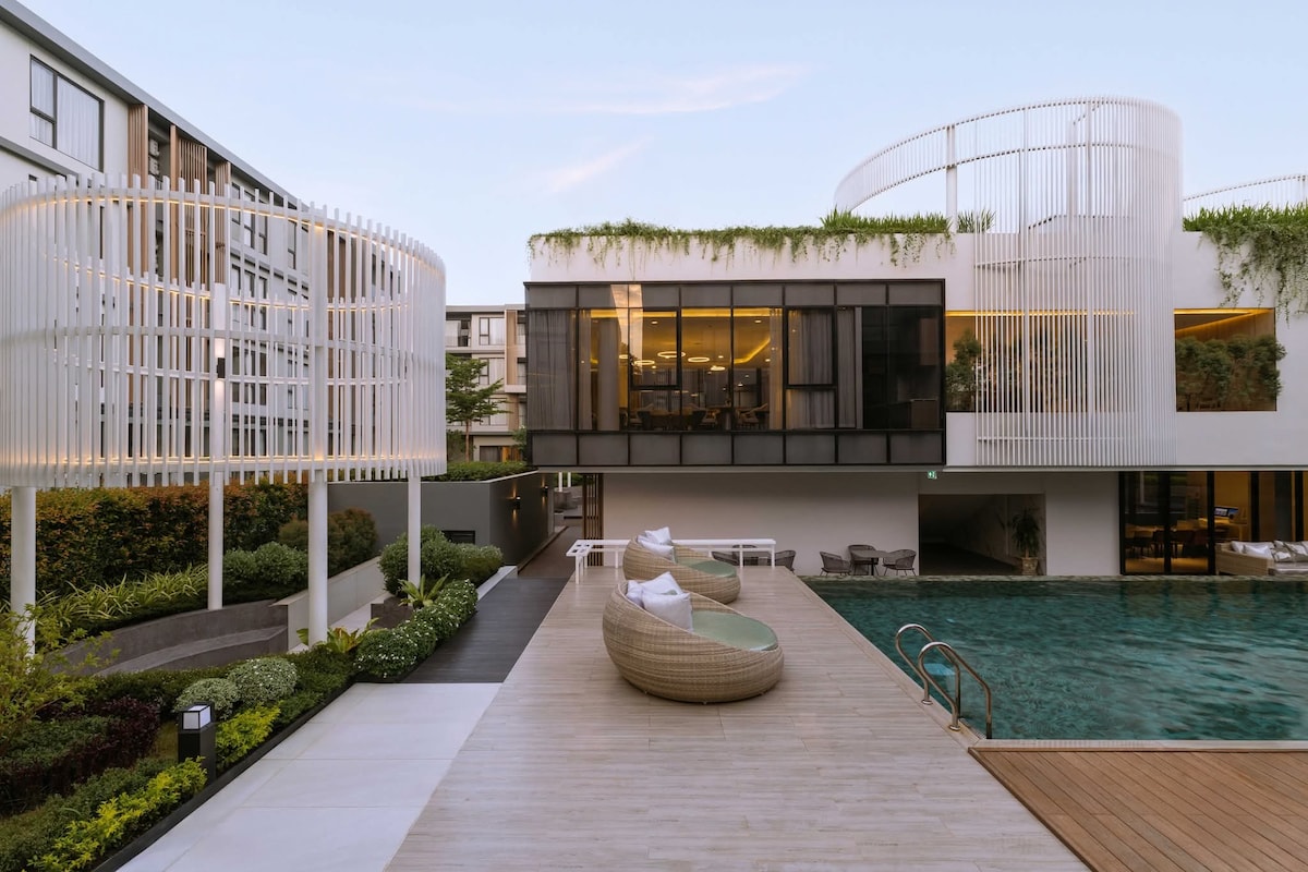 Enjoy a peaceful and private stay in this cozy house near Chiang Mai Airport and the city center. Perfect for relaxation with spacious living areas, a garden, and access to a swimming pool and fitness center.