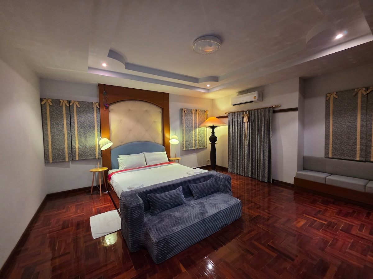Forget your worries in this spacious and stylish Blue Sky Pool Villa. Fully furnished with 3 comfortable bedrooms and a large living room, it’s perfect for families or friends. Enjoy your private blue-tiled pool, and take a short walk to our lush 42Garden Café & Restaurant with another big garden swimming pool. Located in a quiet area only 8 minutes from the airport and Old Town—relax, swim, and enjoy Chiang Mai life.