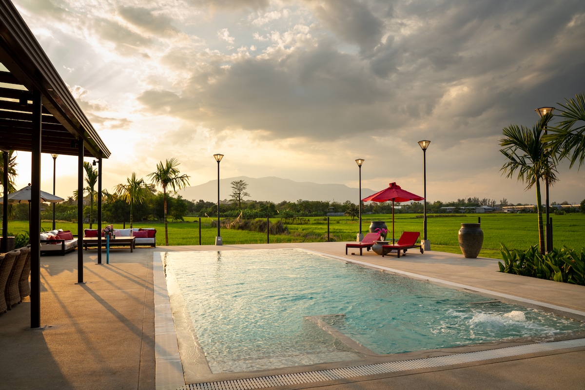 清迈小雨888兰纳奢华庄园·风景价值千万的稻田素贴山景 | 泳池别墅带儿童乐园 | 尚泰百货10分钟
