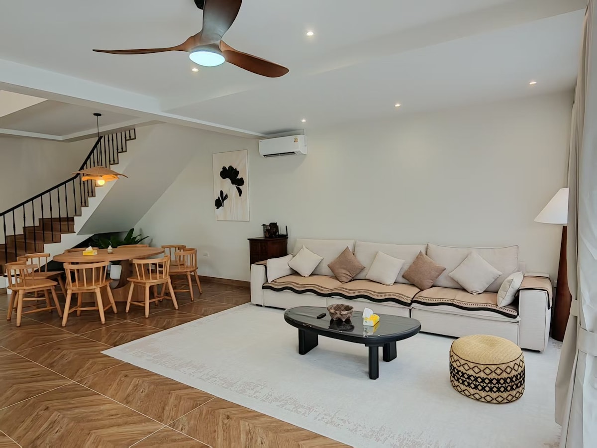 Welcome to our Chiang Mai house, designed for families and travelers seeking a perfect getaway. With 3 bedrooms and 2.5 bathrooms, this space comfortably accommodates up to 6 guests. With western style modern furnishings, unwind in the comfortable living areas, prepare meals in the well-equipped kitchen, and enjoy the peaceful setting. Being 5 mins from Airport Plaza, the house offers strategic location and easy access to local attractions and entertainment options.
