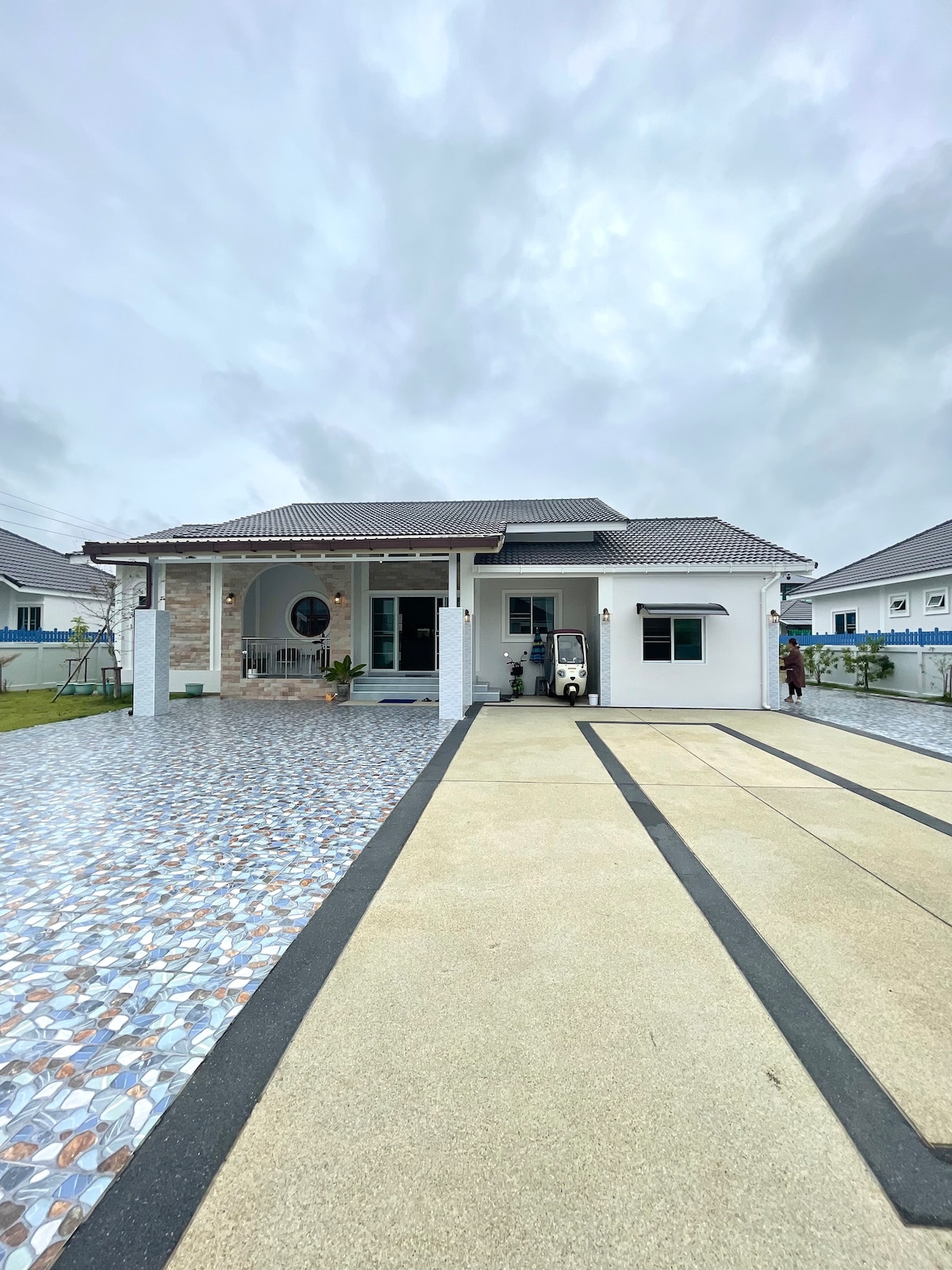 New modern detached house Near Nam Tong Market, Saraphi, 17 km from the airport 2 bedrooms, 2 bathrooms,fully equipped kitchen Digital door lock with online control Smart home connected to Google Home,controls lights and appliances via phone In-house motion sensors with app alerts Google smart speaker for voice control of appliances Air conditioning in every room Wi-Fi CCTV * You should have a private car or use ride-hailing services like Grab or Bolt You can order food and drinks via an app.