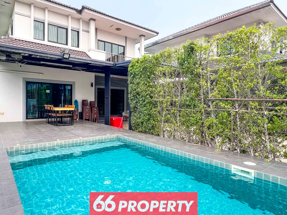 A newly renovated house is located in the city, only 5 minutes away from the airport and popular tourist attractions such as Walking Street, Night Bazaar, and the Old City (Ku Muang). It is quiet and easily accessible situated within a secured community that provides 24hrs security. The house is a few steps (~20m) away from the village's swimming pool, sauna room, gym room and the green garden. The house is suitable for families and groups of friends.