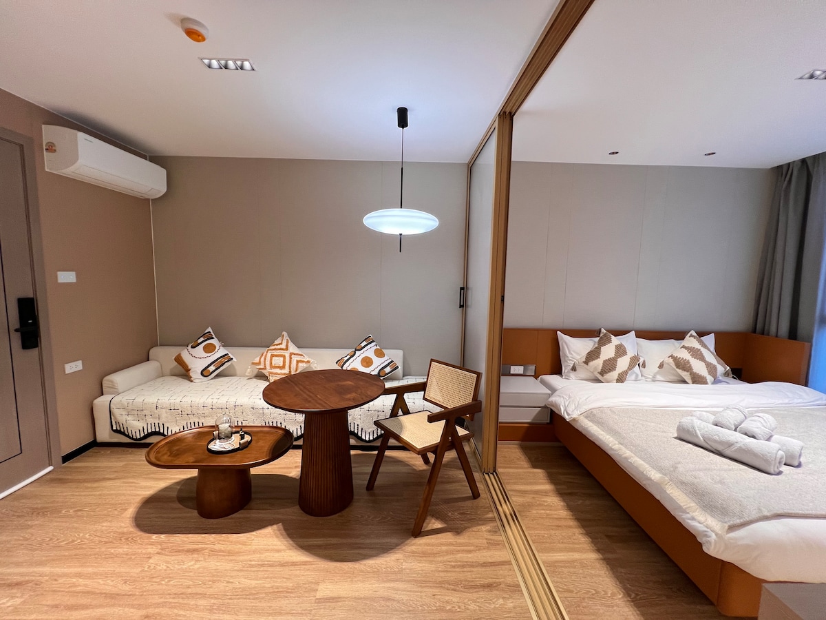欢迎来到清迈!我的两卧两卫一厨一卫的房源坐落在宁静的Arise社区中,配备高档的现代化设施。您可以尽情享受健身房和泳池,为您的旅行增添活力。欢迎预订! 爱上这里的N个理由: 1. 极致宁静私享体验: 逃离都市喧嚣!公寓位于高档专属社区,住户构成稳定。在这里,您将彻底告别城市嘈杂与恼人的飞机引擎声——纯粹静享此刻的悠闲与放松。 2. 黄金地理位置,出行畅通无阻: 骑上小摩托,5分钟即达清迈国际机场!前往古城仅需7分钟,抵达时尚宁曼路8分钟,清迈大学也仅10分钟之遥。 3. 亲子家庭出游优选: 备受当地家庭喜爱的“放学后 (After School)”儿童主题咖啡馆,从公寓步行仅需3分钟,是带小朋友“放电”、享受欢乐时光的绝佳去处! 4. 度假式小区公共设施: 您可以随时畅游清爽的室外泳池,在现代化的健身房挥洒汗水,或在桑拿房中放松身心。小区还设有会议室,满足您的不时之需。 5. 安全私密,安枕无忧: 提供24小时专业安保服务及精密的三重门禁系统。低密度建筑设计更添一份宁静与私密感,让您在此高枕无忧,尽享安心假期。