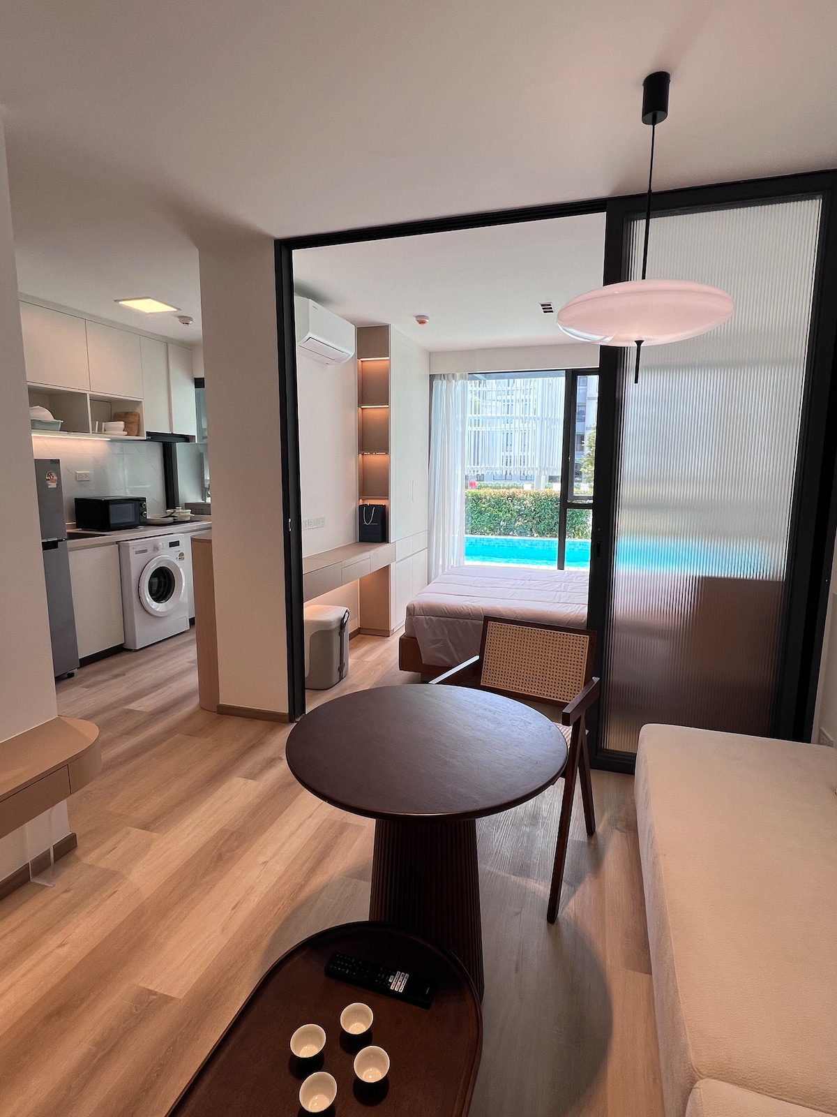 清迈夏蒙尼·花园泳池两房两卫精品公寓位于清迈市区核心地段,环境安静舒适,近清迈国际机场,距离机场尚泰购物中心仅3.3公里,开车10分钟内可达清迈古城、宁曼路、清迈大学等热门景点。 房源为两室一厅一厨两卫的精品度假式公寓,室内面积60㎡,空间宽敞舒适,适合家庭、亲子、情侣、朋友同行或远程工作。公寓客厅餐厅连接景观阳台,两间卧室均带独立卫浴,公寓景观阳台和两间卧室均可欣赏社区院内景观,花园泳池美景近在眼前! 公寓提供1Gbps高速 Wi-Fi、智能电视、空调、洗衣机、热水器等全套家具家电,设有简易厨房,可进行轻度烹饪,非常适合度假与长期居住。全屋干净整洁,采光良好,入住体验舒适自在。 社区为度假式园林设计,拥有多个风格各异的泳池、健身房、共享办公室、儿童活动区域及绿意盎然的公共空间,适合放松休闲、亲子嬉水或晨间散步。社区安全管理完善,全天候出入管控,让您安心入住。 这里是您体验清迈生活方式的理想选择。无论是短暂旅行、休闲度假,还是远程办公,这套公寓都能为您提供舒适便捷的居住体验。欢迎您享受在清迈如家般的惬意与宁静。