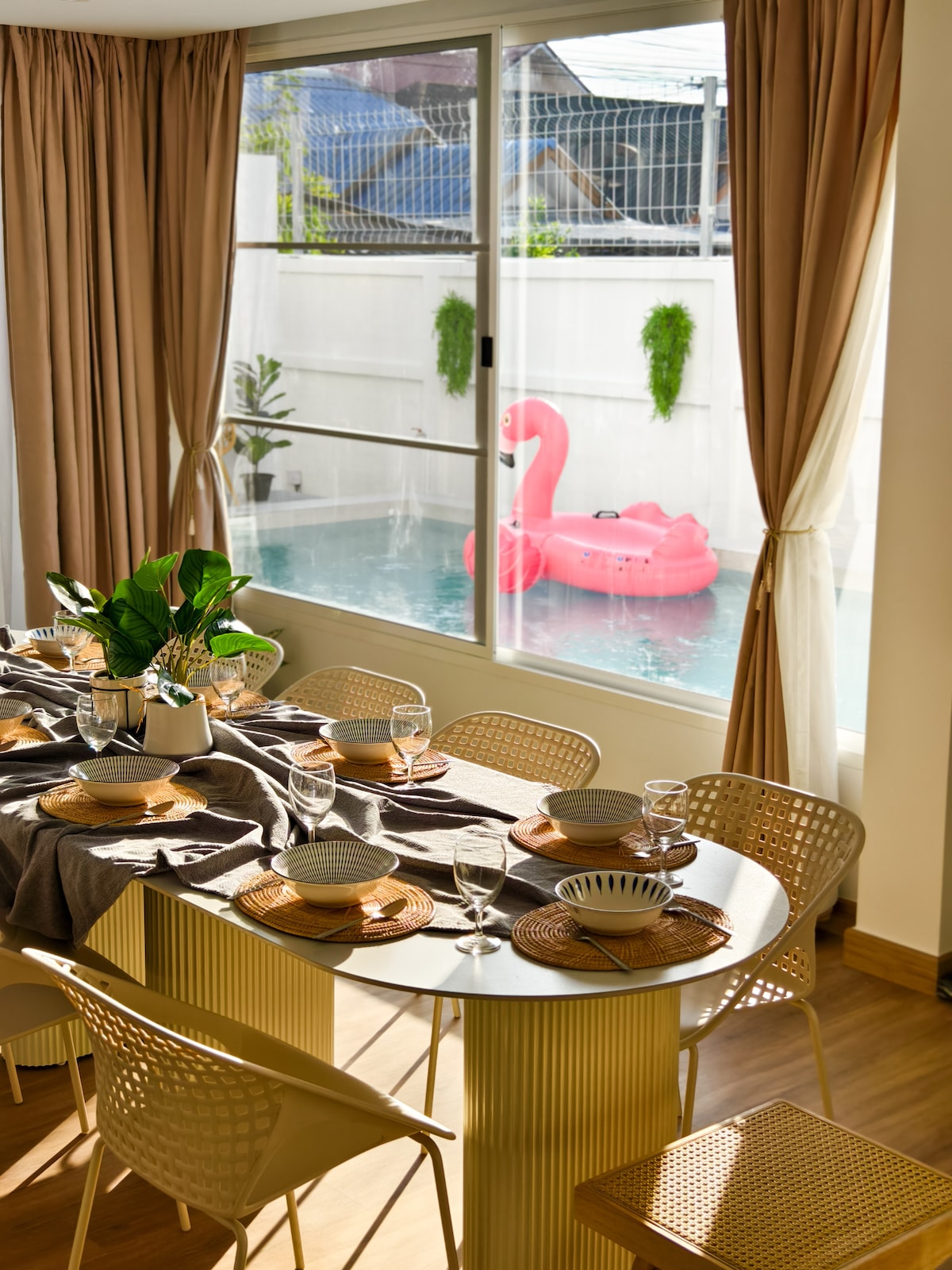 -别墅位于小区内有24小时保安守值 -距清迈国际机场仅15分钟(5公里) 清迈89广场3分钟(800米) 瓦落落市场10分钟(4公里) 古城12分钟(6公里) KCKCKC866 -该地区有当地市场, 7-11便利店, 网红咖啡厅, 网红餐厅 -配备齐全的海水泳池别墅, 可容纳8人(家庭旅行或朋友聚会) -楼下客厅设有用餐区, 沙发(L型), 无线网络, 智能电视 -厨房. 配有2个燃气灶, 炊具, 冰箱, 微波炉, 电水壶, 咖啡机, 面包机 餐桌可容纳8人 -露台配有户外桌椅,太阳伞 -3间大床房,一间双人房, 卧室都带空调, 主卧室最大配有浴缸与衣帽间,一边泡澡可一边欣赏窗外的树景 -3个卫生间 淋浴,毛巾,马桶,洗发水,沐浴露,纸巾,吹风机 -预定2晚以上提供接送服务 如需一日游服务也可有尝提供 -24小时为您服务