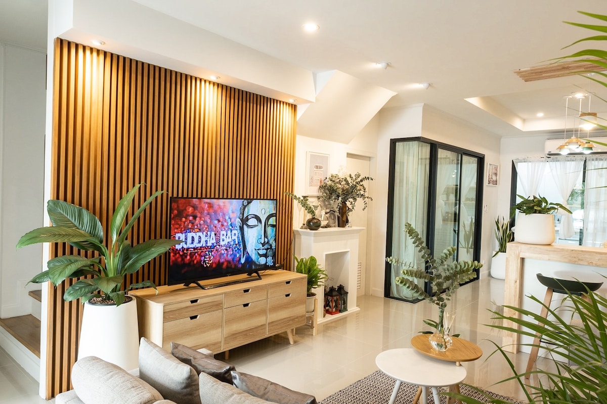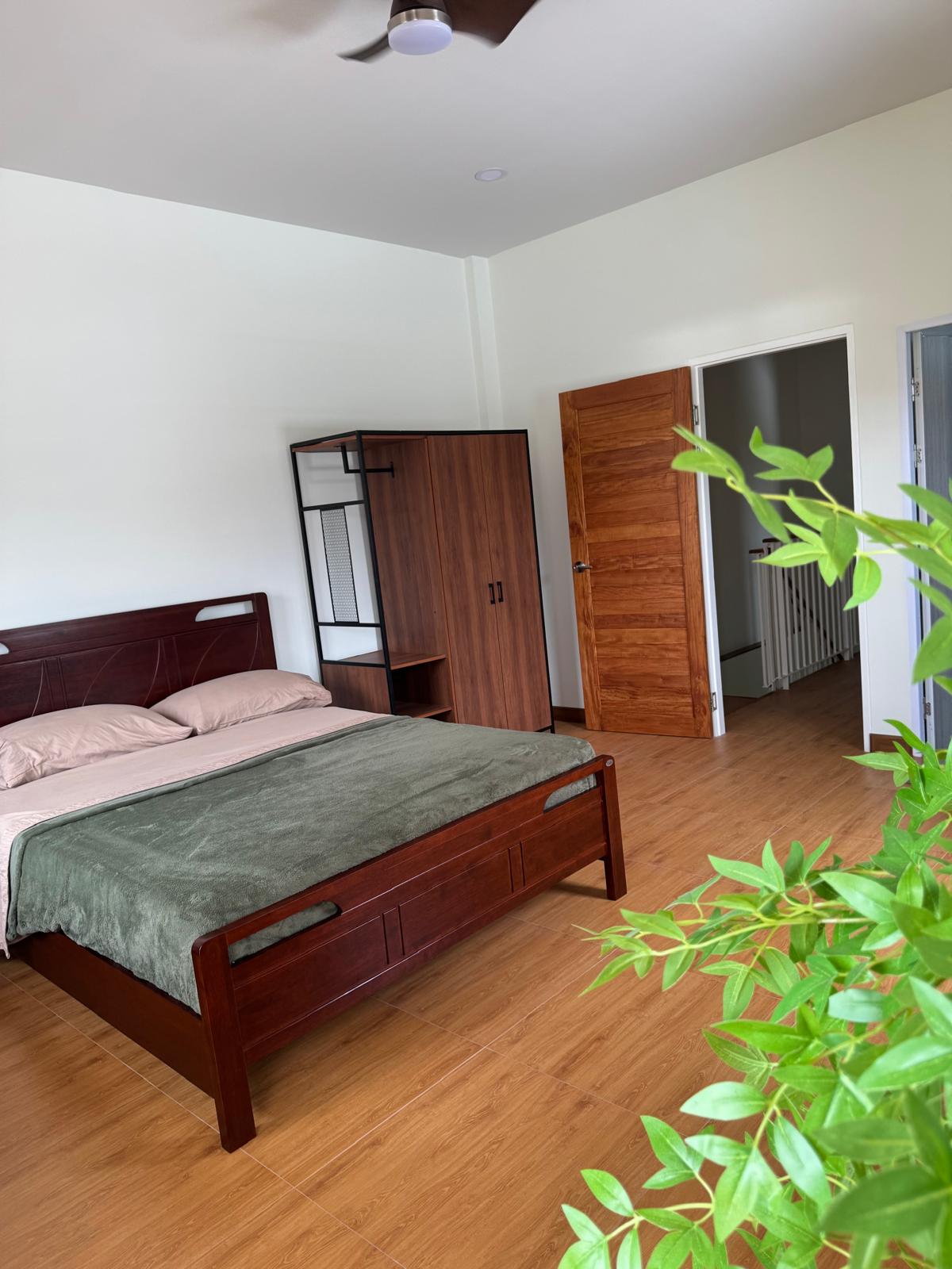 Welcome to my new cozy house, located in a highly secure housing estate, just a few minutes from Chiang Mai Airport. It offers easy access to Chiang Mai city, international schools, supermarkets, and nearby shopping centers. The house is perfect for friends, couples, or families, accommodating up to 6 guests. It consists of 3 bedrooms, 2 bathrooms, a living and dining area, a full kitchen, laundry facilities, and everything you need for a great stay.