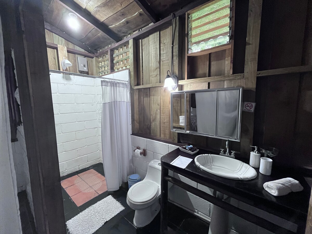 Es un sitio tranquilo con 2 pequeñas y acogedoras cabañas y una suite todas con aire acondicionado, parqueo privado y un espectacular jardín con senderos con grandes árboles a la orilla del río Sarapiquí, donde se pueden apreciar diversas especies como tucanes, lapas, monos, ranas de colores, perezosos y mas, el sitio es también un campamento para tours de rafting, kayak, pesca y senderismo. El sitio es Pet Friendly, haciéndolo el lugar perfecto para descansar con toda la familia.