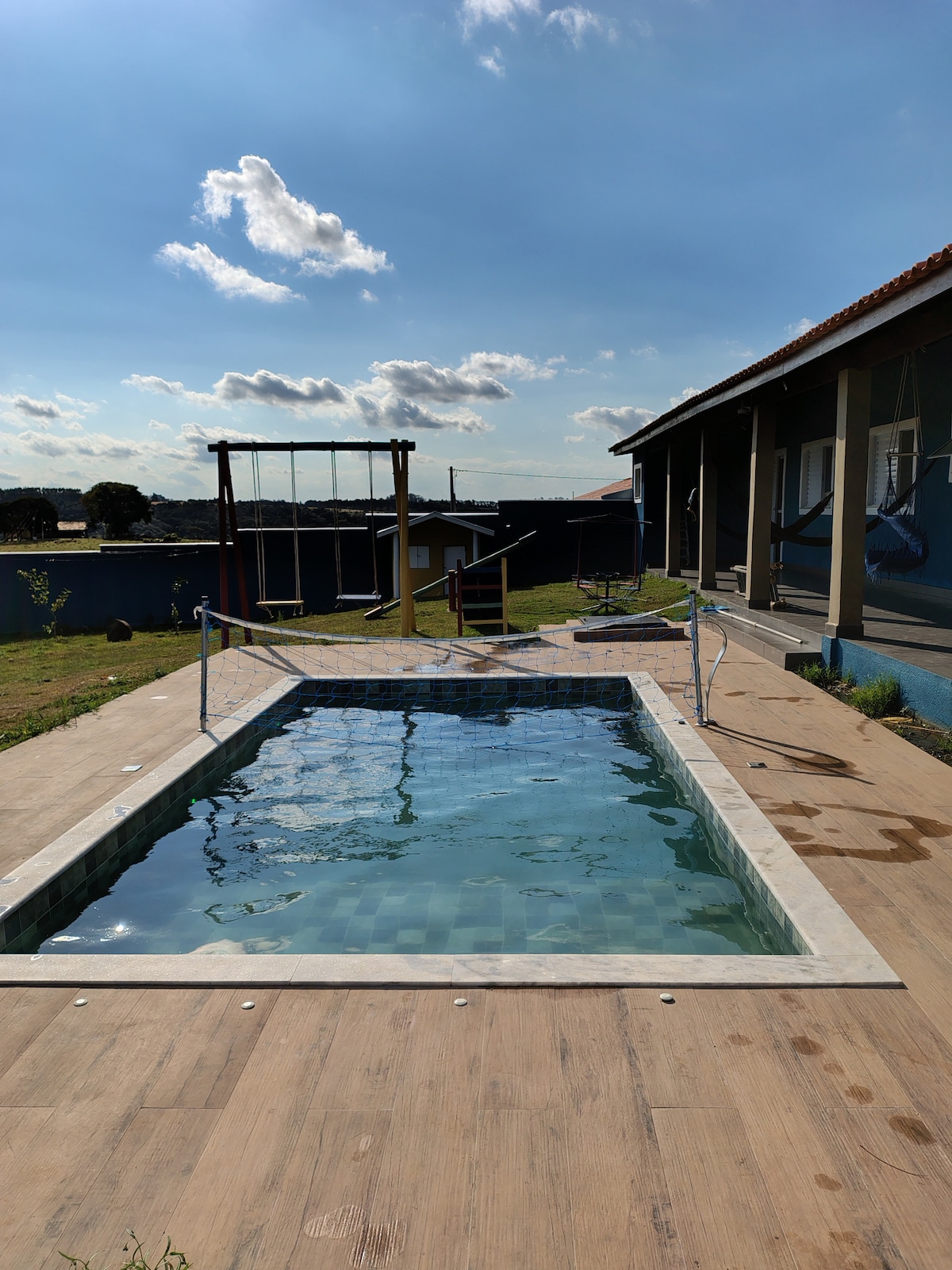 chácara em condominio fechado com 4 suítes todas com tv a cabo com todos os canais liberados, acomoda no máximo 16 pessoas,área gourmet completa com fogão, geladeira, cervejeira,mesas,mesa de pebolim,videoke,piscina de 7 x 3,5 com rede de vôlei, quiosque,redario,lareira externa,cercada pela natureza Peço que preencha a quantidade de hóspedes correta para não ter problema na liberação na portaria do condomínio