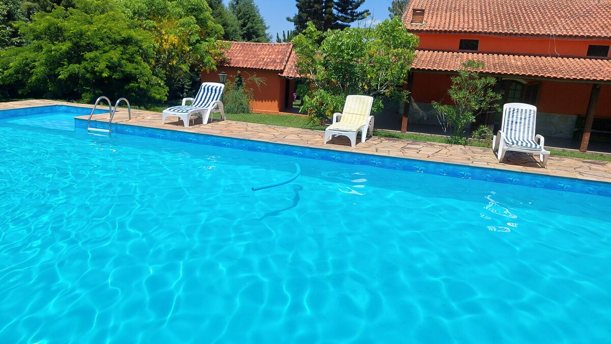Chácara ensolarada em condomínio fechado com portaria fechada e acesso controlado. PISCINA COM AQUECIMENTO. Com 5 quartos sendo uma suíte mais 4 quartos, acomoda 4 famílias de 3 pessoas mais 1 casal com muito conforto. É sustentável, possui geração de energia solar. Possui amplo gourmet com churrasqueira, forno de pizza e fogão à lenha. Leve toda a família para se divertir. Cozinha completa com todos os utensílios e lava-louças. Smart TV 70 pol.