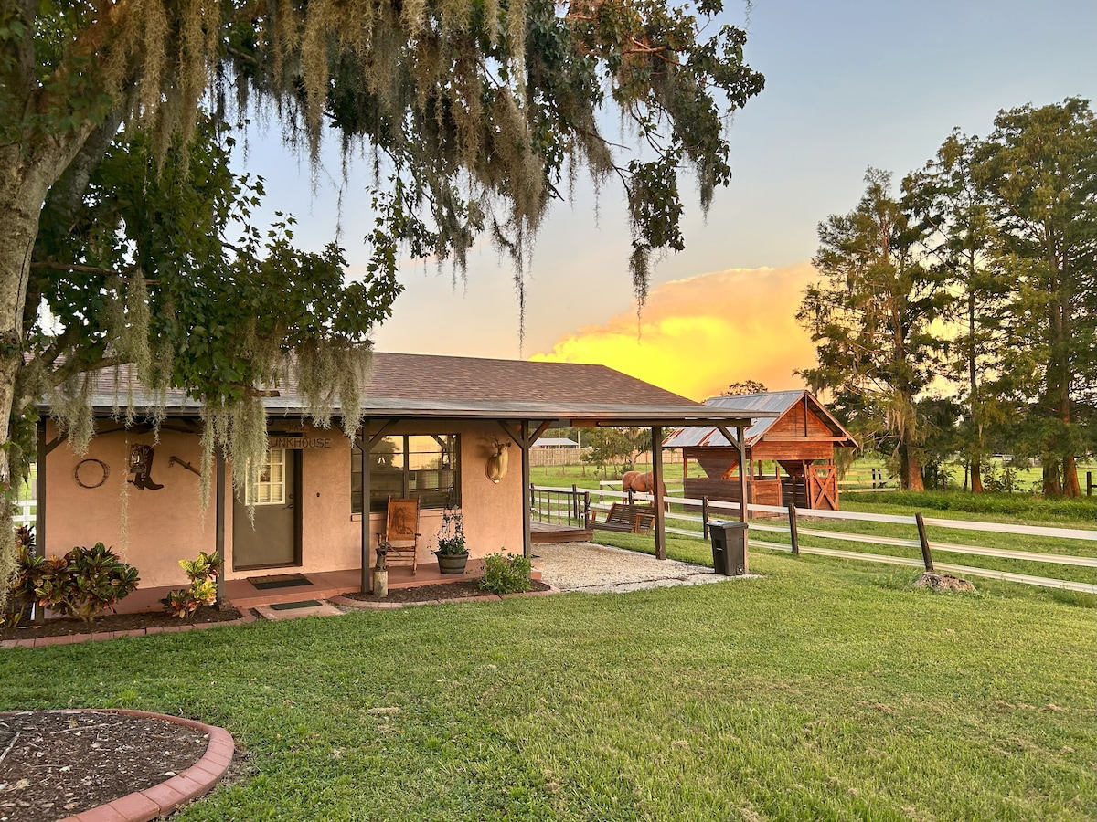 Relax, unwind and unplug at this cozy Old Florida-style country cottage! Here you are away from it all in peaceful bliss... but if you want to go out for dinner, it's an easy drive into town! Located on a beautiful 5 acre plot, this guest home is the perfect spot for your Florida getaway! Just 30 minutes from Siesta Key and 6 minutes from the entrance to Myakka State Park, you can see the best of Florida, both the swamps and the beaches, all in one day!
