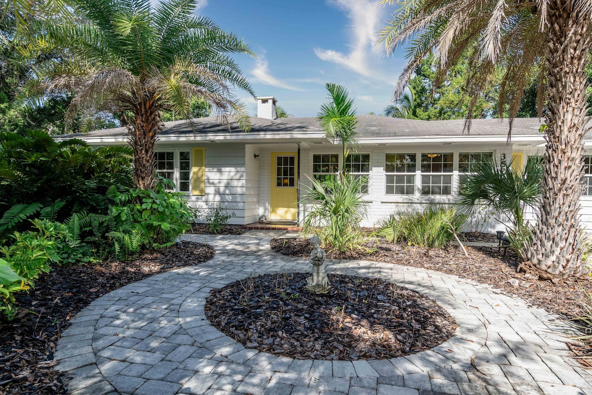 Experience life 4 blocks from the Gulf, ½ mile to Siesta Key — America’s #1 Beach. With effortless access to Sarasota’s dining & arts scene, Siesta’s white sand beaches, St. Armand’s, & Gulf Coast adventure! 2BR boutique bungalow • Sleeps 6 • 4 beds Situated in the coveted Coastal District (‘West of Trail’) — chef kitchen, beach gear, Smart TVs, marble spa bath, laundry, fast Wi-Fi. Grill lobster under stars, unwind in your tropical garden, & walk palm lanes to cafes, and waterfront sunsets.