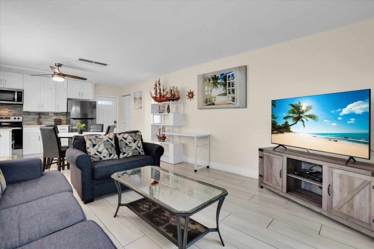 Relax & un wind in this stylish 1BR, beachfront Siesta Key duplex. Just steps from the sparkling Gulf Coast beaches, this private getaway features colorful interiors, a cozy bedroom, open-plan living & a backyard oasis with a private pool, hot tub & BBQ. Perfect for families, couples, or small groups seeking sun, fun & unforgettable memories. Book now for your dream beach escape! ☀ private pool ☀ Steps To Beach ☀ Life-Size Connect 4 ☀ BBQ Gril ☀ Hot Tub