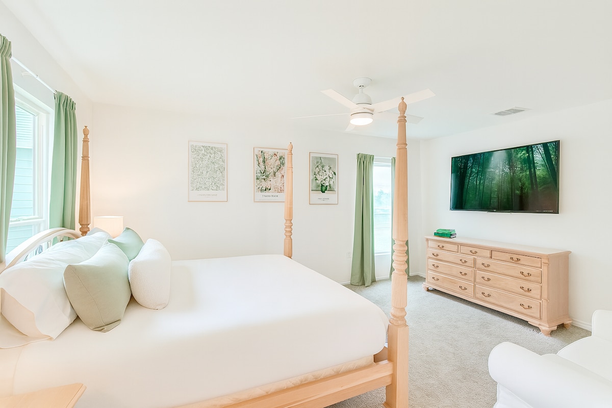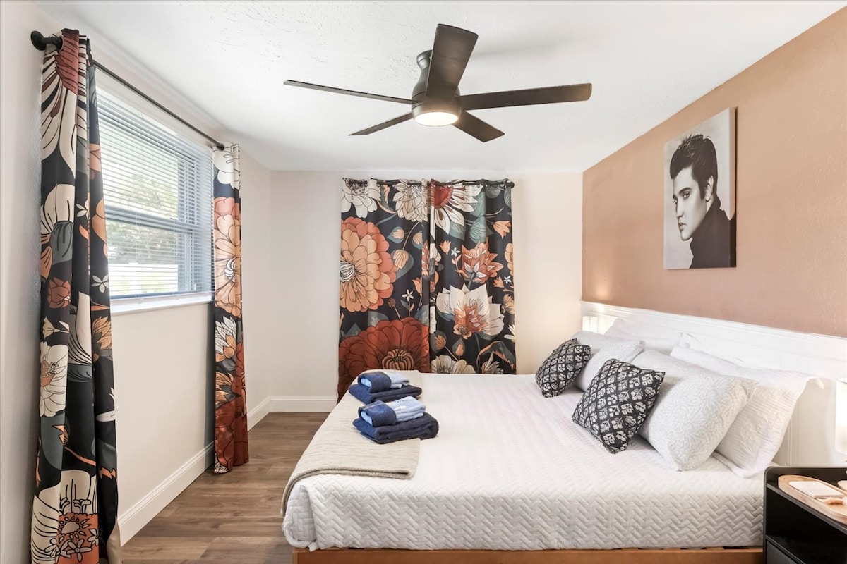 Step into Iconic, a glamorous vintage escape inspired by the legends who vacationed in Florida’s golden age. Enjoy bright retro décor, themed bedrooms, a record player, a sunny kitchen, and a lush outdoor lounge with dining, BBQ, and cozy fire pit. It’s a stylish, inviting getaway where Old Hollywood charm meets breezy tropical living.