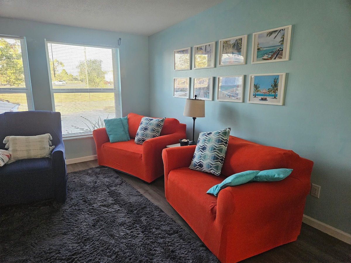 You’ll love Yesterday’s Sunshine for its vintage Florida charm, calming vibe, and newly renovated comfort. Enjoy two cozy bedrooms, a record player with classic vinyl, a dedicated office space, and a spacious outdoor lounge with BBQ, fire pit, and games. It’s the perfect spot to unwind, slow down, and savor sunny, nostalgic Florida living.