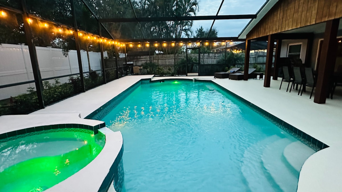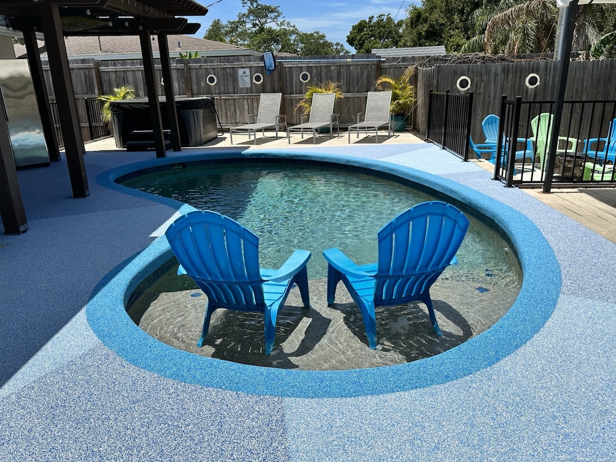 海岸豪华房源,盐水泳池/热水疗,距离Siesta 5英里