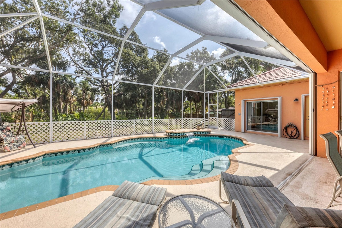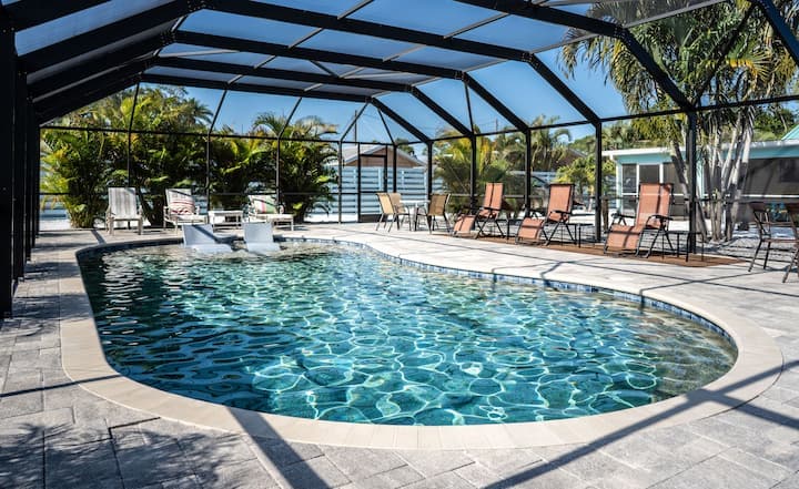 Sleeps 8 w/ private heated pool + water views! Within walking distance or a 5-minute car ride to Port Charlotte Beach Park! This waterfront, 3 bedroom, 2 full-bath home is the best! Huge pool with lanai for swimming, floating, grilling, and relaxing. Within minutes to dining, shopping, everything! Wifi included & 4 TVs to stream your favorite movies. Full stocked kitchen. Washer/Dryer. 30 minutes to the Hot Springs, less than 5 to groceries, Fisherman's Village. 15 minutes to PGD