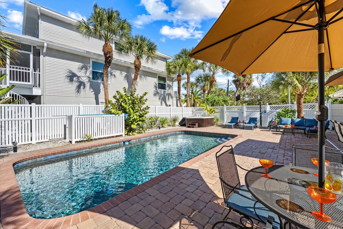Discover your perfect Siesta Key getaway in this vibrant 3BR, pet freindly duplex in the peaceful South Village. Just steps from the Gulf Coast beaches, this private retreat blends colorful décor, modern comfort, and playful outdoor fun. Lounge by the private 𝐡𝐞𝐚𝐭𝐞𝐝 𝐩𝐨𝐨𝐥, soak in the 𝐡𝐨𝐭 𝐭𝐮𝐛, or enjoy the backyard murals perfect for families, groups, and beach lovers. Book now for an unforgettable stay! <b>☀ Private Pool ☀ BBQ Grill ☀ Easy Beach Access</b>