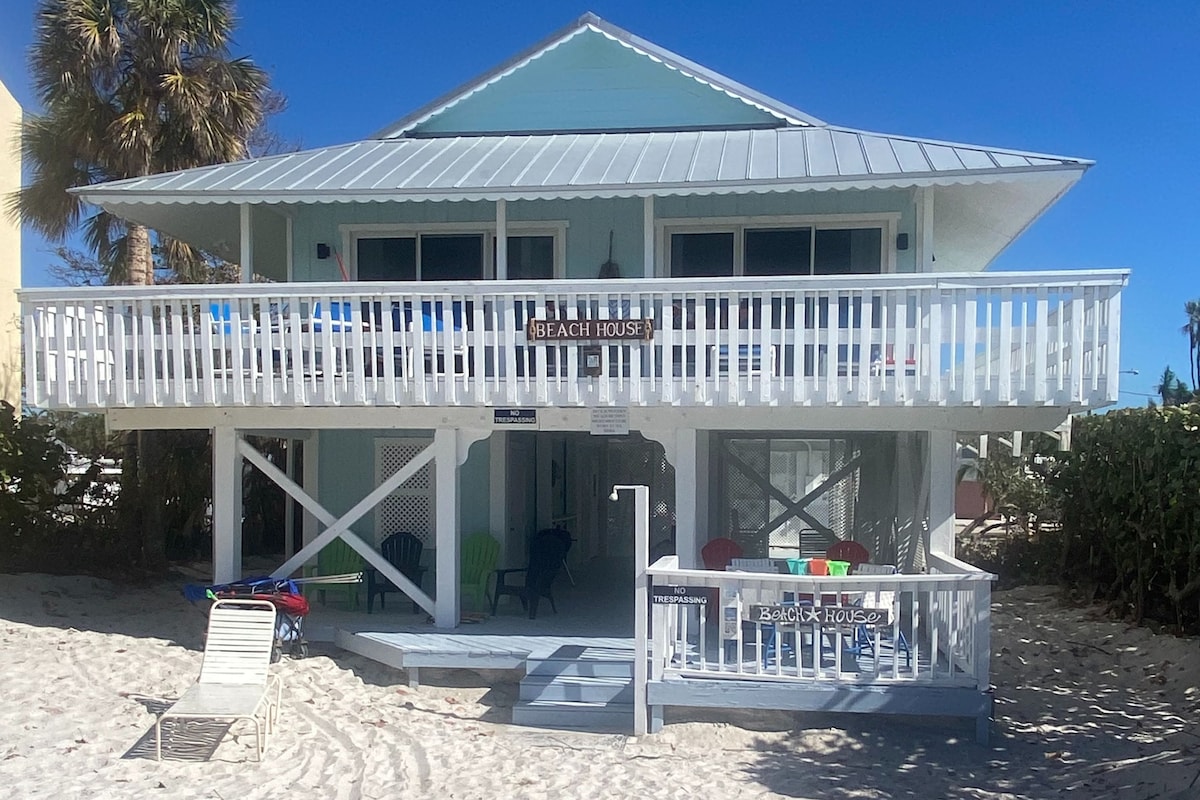 Welcome to Golden Girl. Our 3 bedroom 2 bath home is totally renovated with all new furniture. A 2nd level observation deck, private hot tub, bunkroom sleeps 6, two bdrms with kings, queen sleeper sofa in LR, laundry, high speed WIFI, all new appliances, smart TV's, so much more! Lanai opens up to semi private beach and a quiet neighborhood of single family homes. There is Bay access too. Kayaks available for rent. There is a separate apartment above not included. The location cannot be beat!