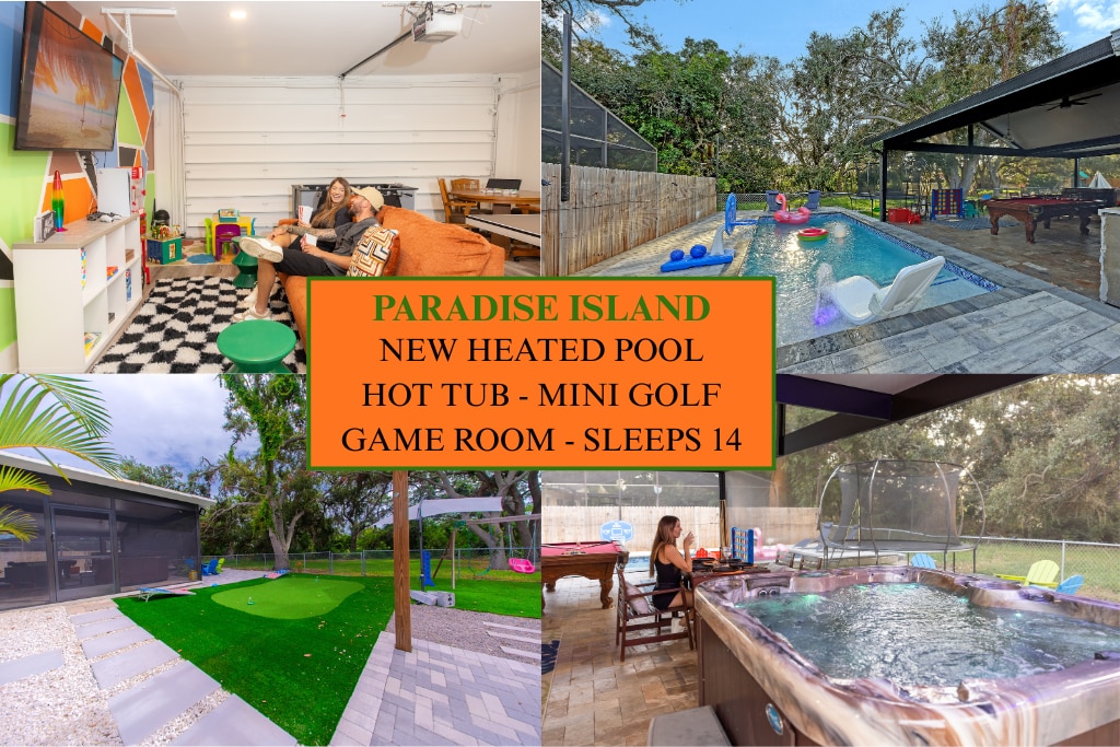 家庭乐趣•泳池•可睡14人•游戏•萨拉索塔国际机场、奥米德海滩和海滩