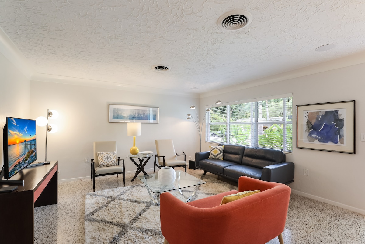 Retro circus romance & mid-century style near downtown Sarasota. ✅ Main Street, Downtown Sarasota 2 miles - 6 mins ✅ St. Armand’s Circle: 4.5 miles - 15 mins ✅ Lido Key Beach 5 miles - 15 mins ✅ Siesta Key Beach: 6 miles - 18 mins ✅ Downtown Bradenton 12 miles - 25 mins ✅ Bradenton Beach 14 miles - 30 mins ✅ Casey Key 16 miles - 30 mins ✅ Airport: Sarasota–Bradenton International Airport 6 miles - 12 minutes