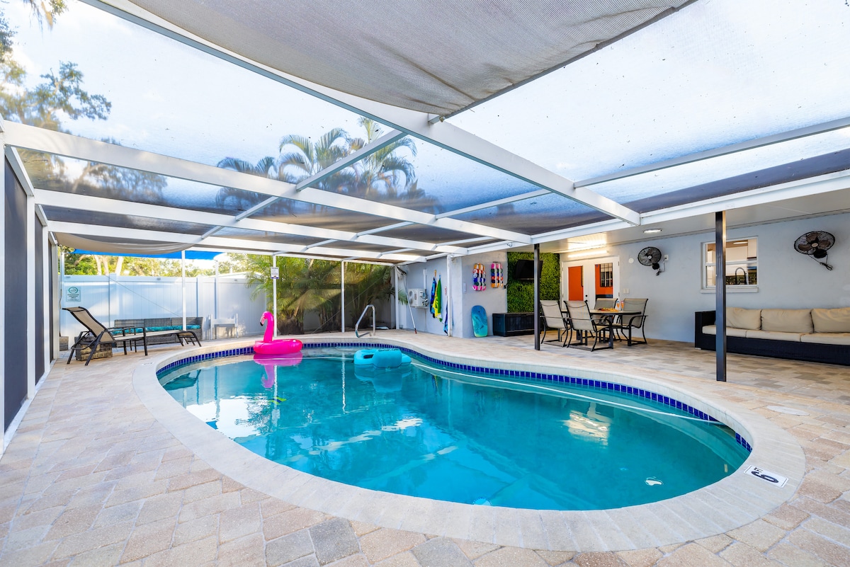 阳光明媚的天堂,带泳池和热水浴缸,距离Siesta Key仅5分钟路程!