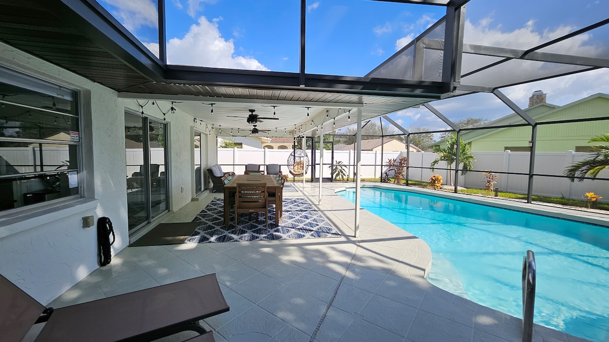 Enjoy easy living in this updated tropical home! Your private screened lanai is perfect for seamless indoor/outdoor relaxing, with a heated pool and covered dining/lounge area with a 58" outdoor TV! The interior of the home is bright and open with cheerful coastal decor and plenty of room to spread out. We provide everything you need with a well-stocked kitchen, gas grill, game room, beach gear, towels, EV Charger! In a quiet neighborhood with quick access to AMI beaches IMG, parks, and trails!
