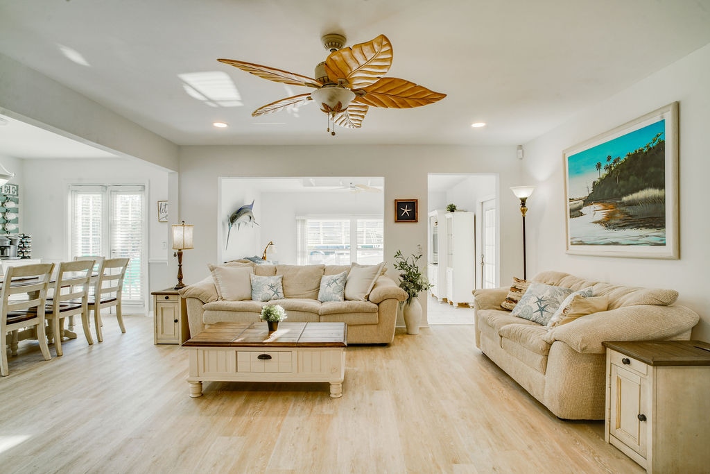 Stay at one of Sarasota’s top-rated Airbnbs, perfectly centered between the ever famous Siesta Key and several other stunning beaches. Lounge by the newly renovated heated pool with upscale chaise lounge chairs, lush garden views, and a stylish patio with ample seating. Inside, enjoy a modern, beach vacation themed design with an open layout, fully stocked kitchen, fast WiFi, and Smart TVs in every bedroom. Your on-site Superhost is nearby but works full time and gives total privacy.