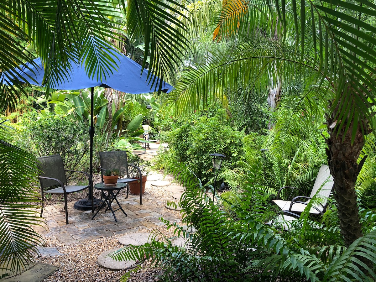 A Florida wellness retreat>>> Discover the charm of our delightful cottage, exceptionally placed amidst lush greenery! The interior offers an inviting ambiance with its plush, comfortable furnishings and a well-equipped kitchen with an espresso machine. Quietly nestled away from the hubbub of city life, our cottage offers a tranquil escape yet is in close to local attractions. Relish the day exploring charming seaside villages and beaches or simply bask in the serenity of your private haven.