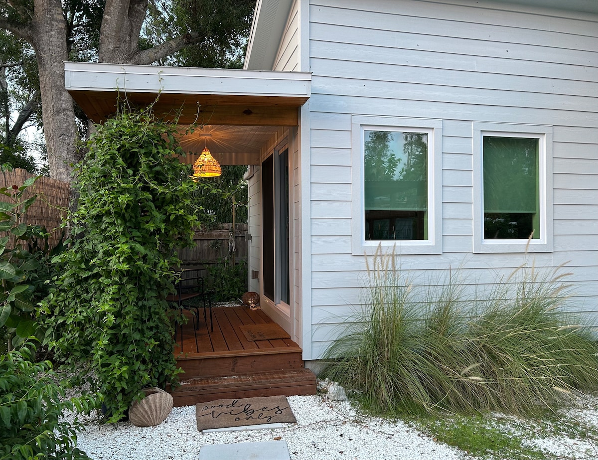 Heart of Southside Village 10 minutes from #1 beach in the USA, Siesta Key. Five-minute drive to downtown Sarasota, 10 minutes to St. Armand Circle, Lido & Longboat Key. Enjoy this peaceful space within walking distance to shopping, restaurants & groceries. Charming private guest house offers a queen bed, sitting chairs, table, dresser, large ensuite bathroom with a walk-in shower & private outdoor sunny space and patio. Use the grill to cook your next meal. It's the perfect couple's getaway!