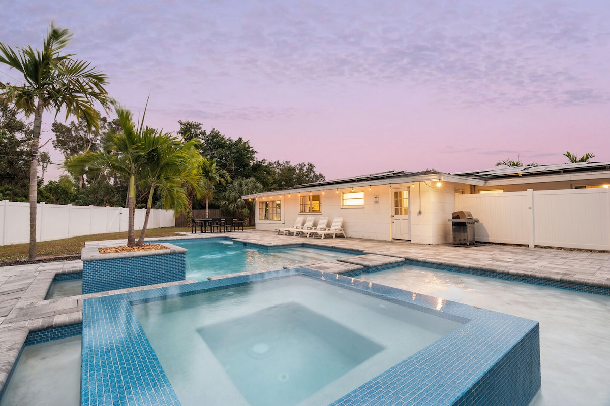 BNB Breeze Presents: Olive Tree Oasis! This charming home is nestled in a family-friendly neighborhood, 3 miles from downtown Sarasota. Enjoy sunset walks on the nearby Ringling Bridge or take a swim at Siesta Key Beach. After a day of fun, relax by the pool and have a barbecue. Your perfect vacation home awaits! - Hot Tub - Private Heated Pool - heated at NO extra cost from Nov 21 - April 1st - Large, Private Backyard - & More!