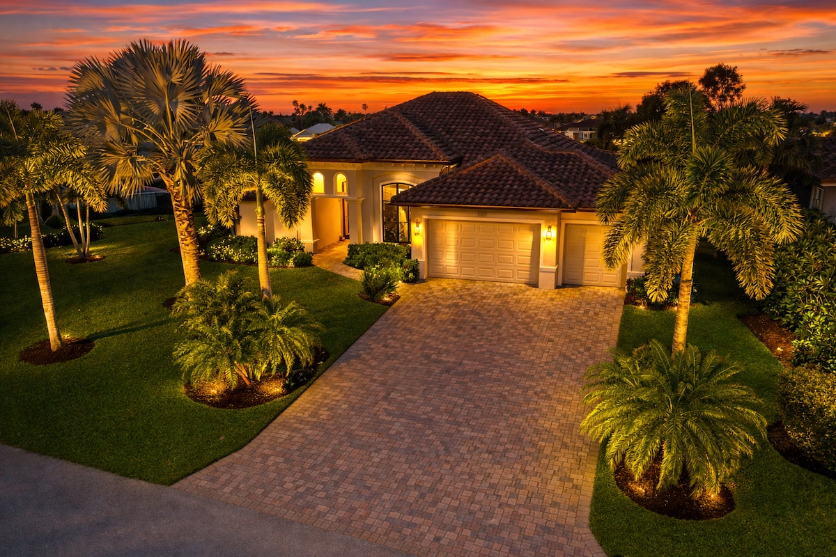 Experience Cape Coral like never before all from this gorgeous 3bedroom, 3bath villa. This elegant villa boasts a vibrant interior decorated with Italian furniture and fully equipped kitchen. Begin your day with a few laps in the private pool before heading to the Yacht Club Public Beach, Sun Splash Family Waterpark or Pine Island to soak up some sun! After adventurous days, continue making memories back home with a family barbecue and a soak in the hot tub or have a movie night with loved ones!