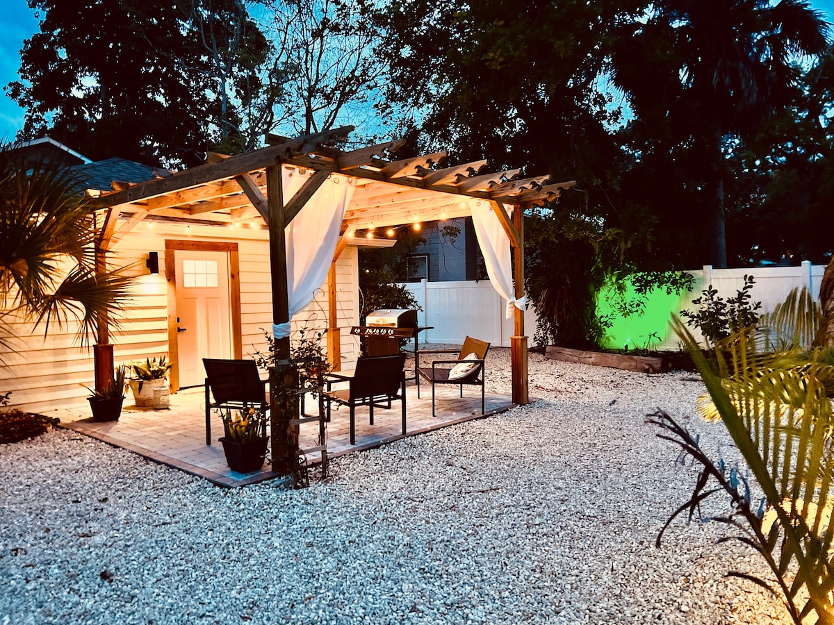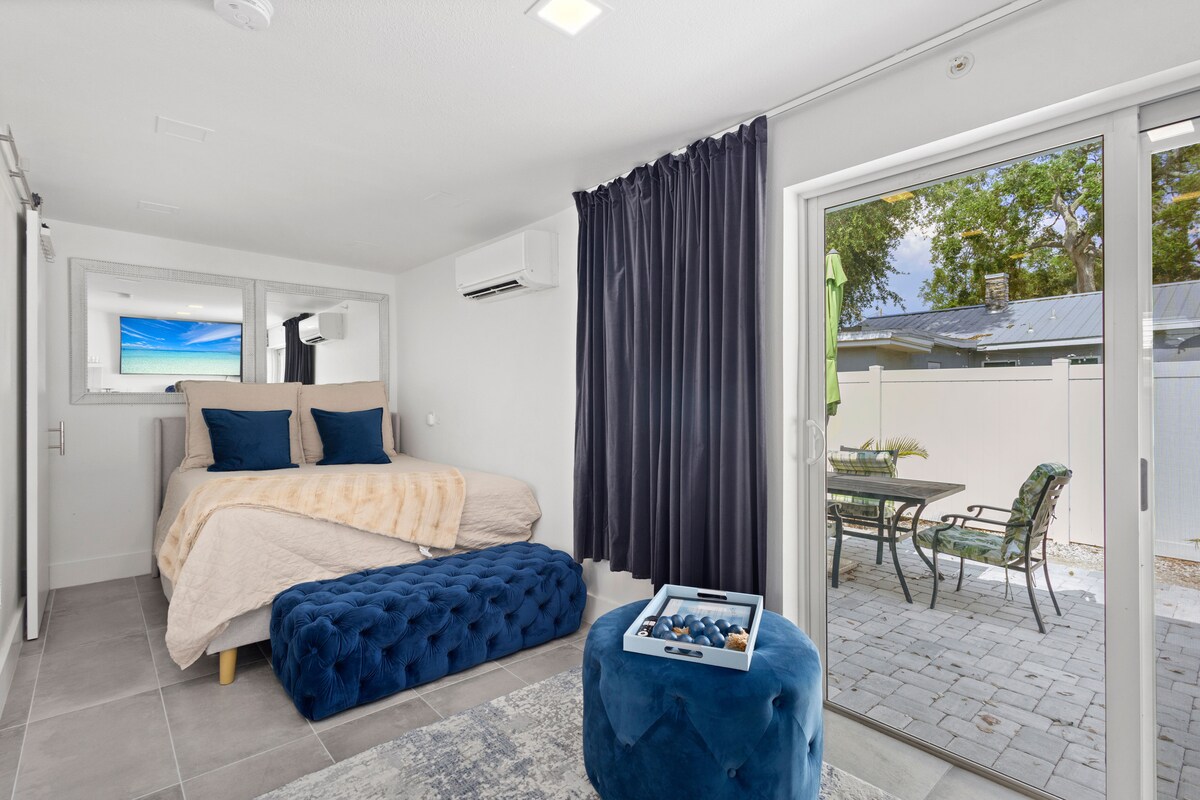 Welcome to my brand new guest house! The original building has been rebuilt and completed in December 2024 to offer a more comfortable experience for my guests. Peaceful and centrally located, ideal for relaxation and easy access to explore historic Sarasota and the beaches. A quick drive, bike or a short walk to downtown Sarasota, Selby Botanical Garden and Pineapple Street antique shops. 1.5 miles to Sarasota Bay. 3.5 miles to St Armands Circle and Lido Beach. 6.5 miles to Siesta Key.