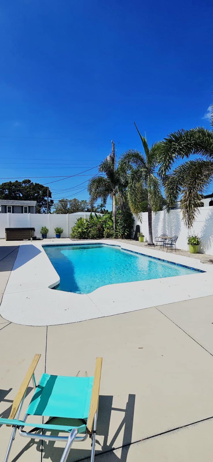 THE PALMS is a single-family home with heated private pool in the heart of Sarasota. The home is 5 miles to the #1 beach in the USA: Siesta Key Beach. It offers 3 bedrooms, 2 bathrooms, a large living space & screened-in sunroom. The fully private, fully enclosed outdoor space is one-of-a-kind with a heated pool, hot tub, BBQ grill, fire pit, beach bar, outdoor TV & lounge chairs for families & snowbirds to enjoy Florida living in style!