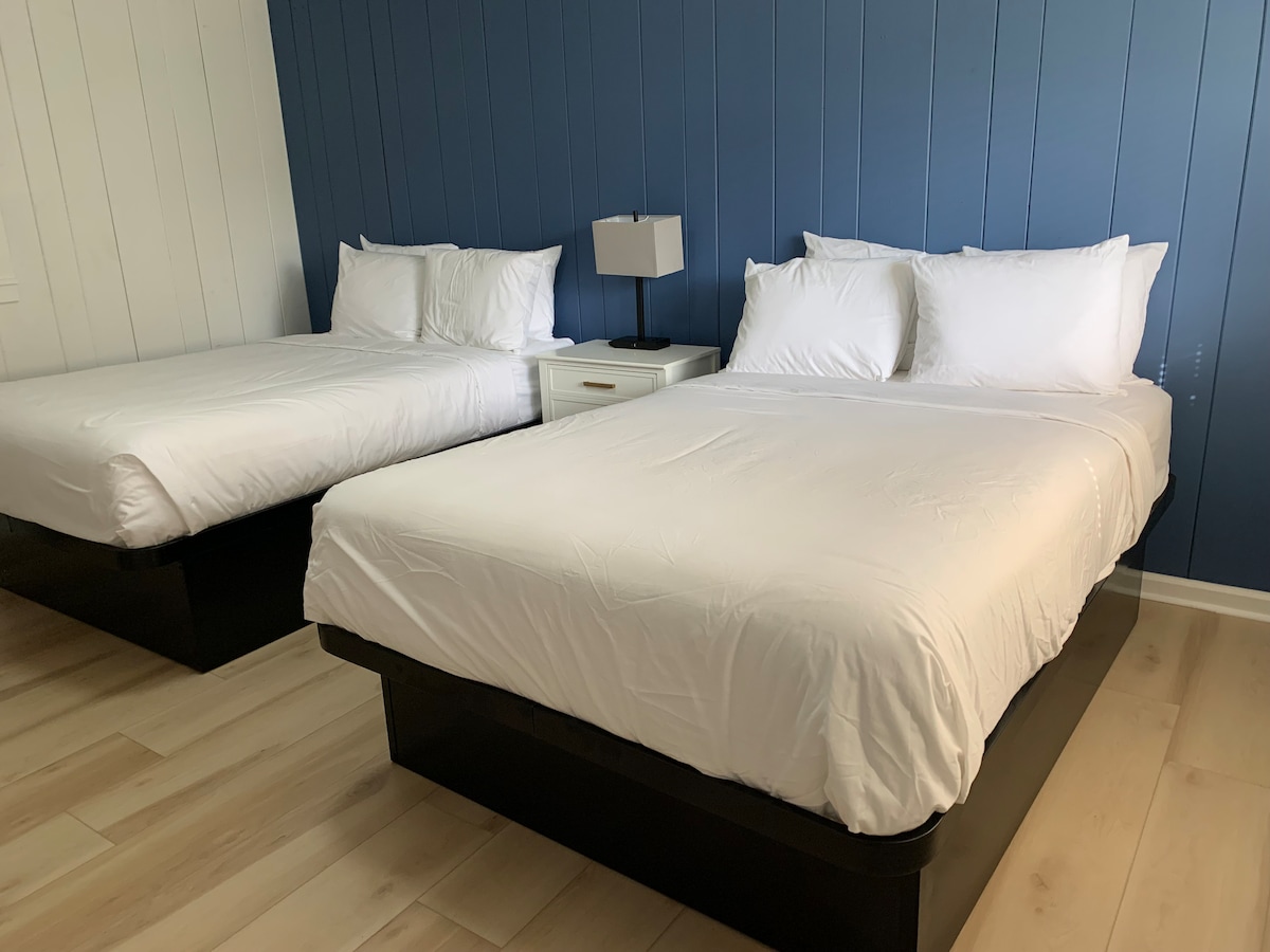 Our spacious Two Full Beds with Sofa bed in the lakeside location accommodates up to 6 guests. Guests experience fresh new bedding and towels, flat screen 50-inch TVs, free WiFi, and climate-controlled air conditioning. Featuring a kitchenette, this room includes electronic lock guest code access, a coffeemaker, microwave, mini refrigerator, and a private bathroom with shower/ bathtub combo.