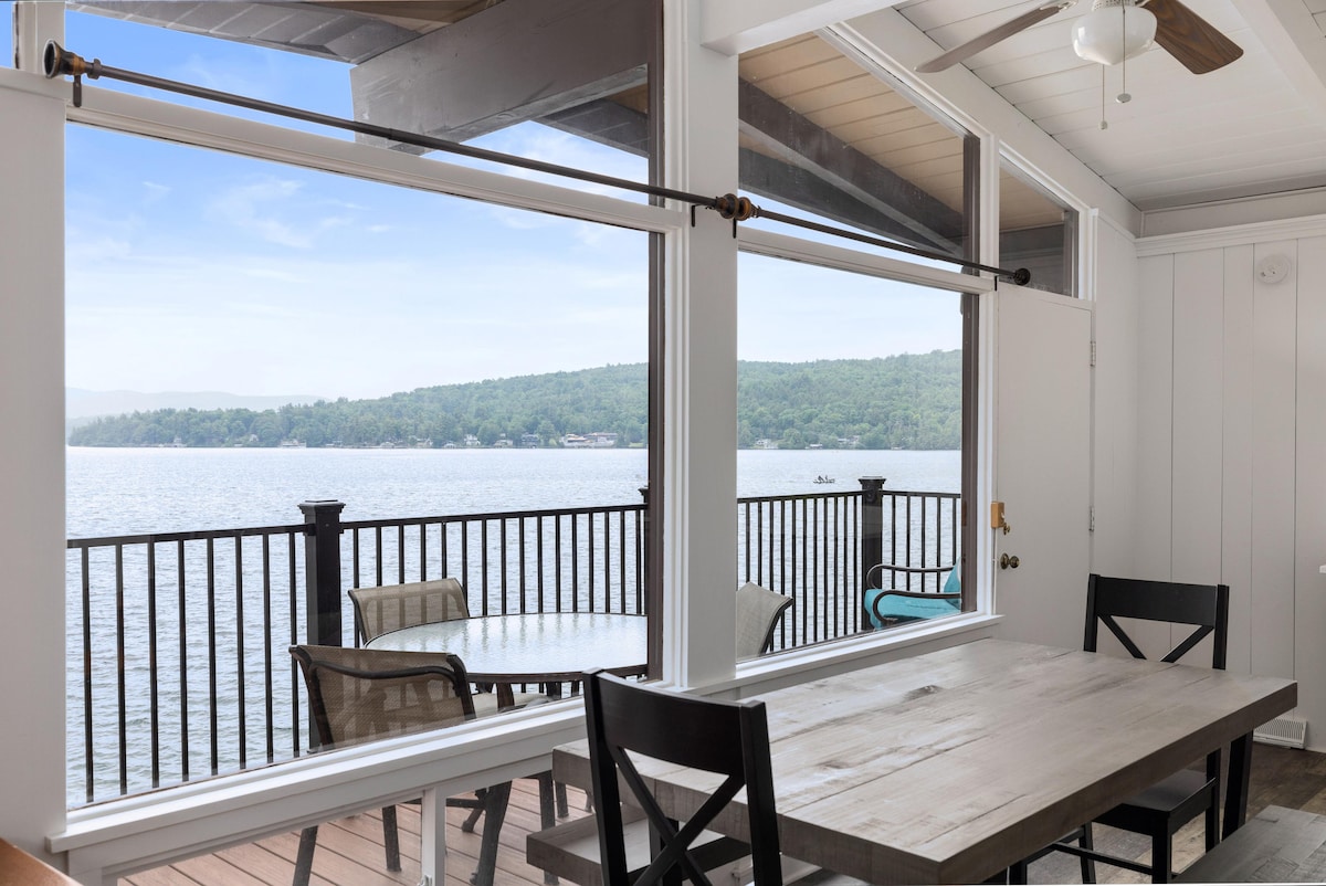 Beautiful Sacandaga lake front retreat nestled in the Adirondacks with amazing sunset lake views, a gourmet kitchen & amenities that will give you the comfort of home with Adirondack charm! Spend time on your 100-ft private lake access. Or take in the amazing views from the patio or 3-season screened in porch. At night, sit under the stars while relaxing in the hot tub. Bring your boat, fishing poles, snowmobiles, or snow gear for this year-round luxury Adirondack vacation home!