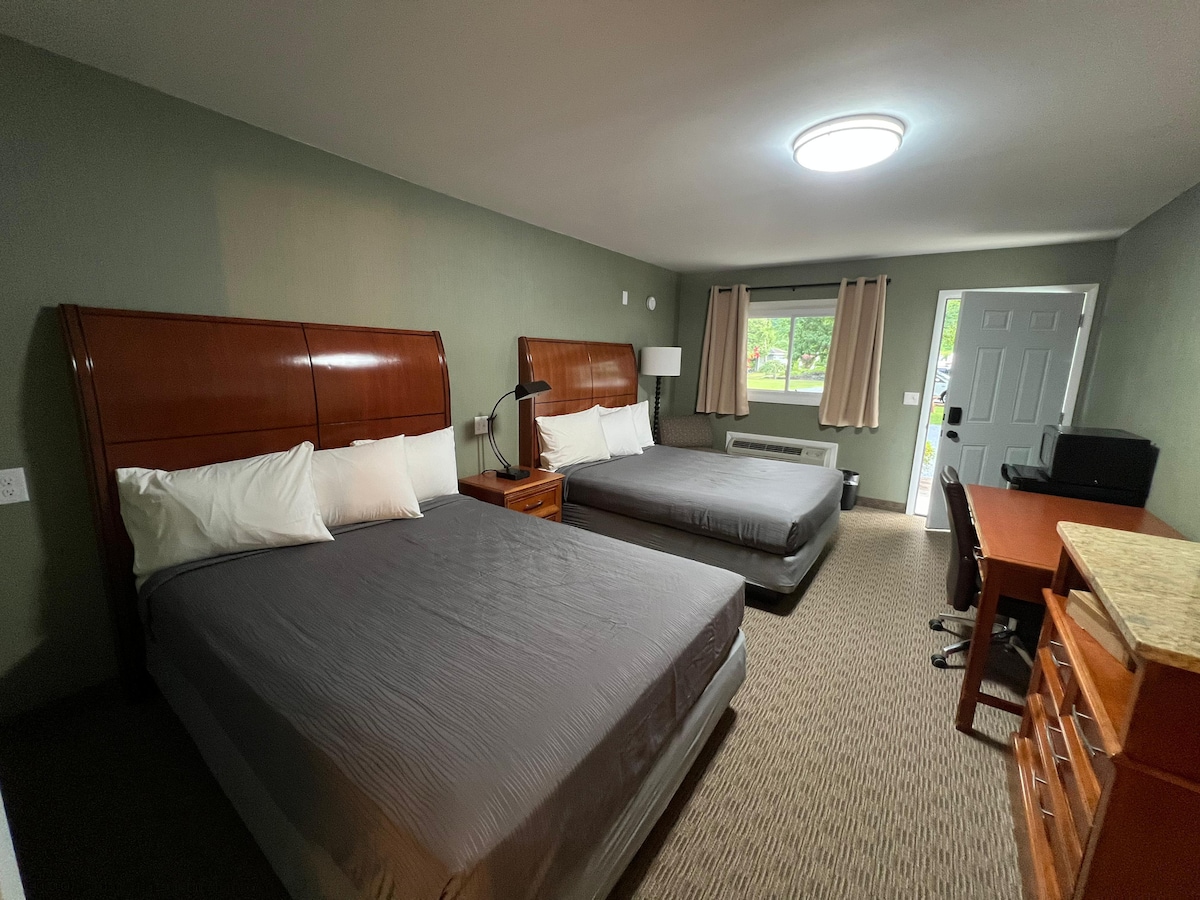 Slip away to your private Adirondack retreat. This warm and wood-lined King Studio at the Lake Haven blends rustic wood finishes with a cozy Jacuzzi tub for two, plus a kitchenette for breakfast-in-bed mornings. Soak beneath soft lighting in your private Jacuzzi tub, sip coffee from your kitchenette, and unwind in Adirondack comfort just steps from dining and the lake. Perfect for couples who want comfort, charm, and walkable access to Lake George Village — without resort-level prices.