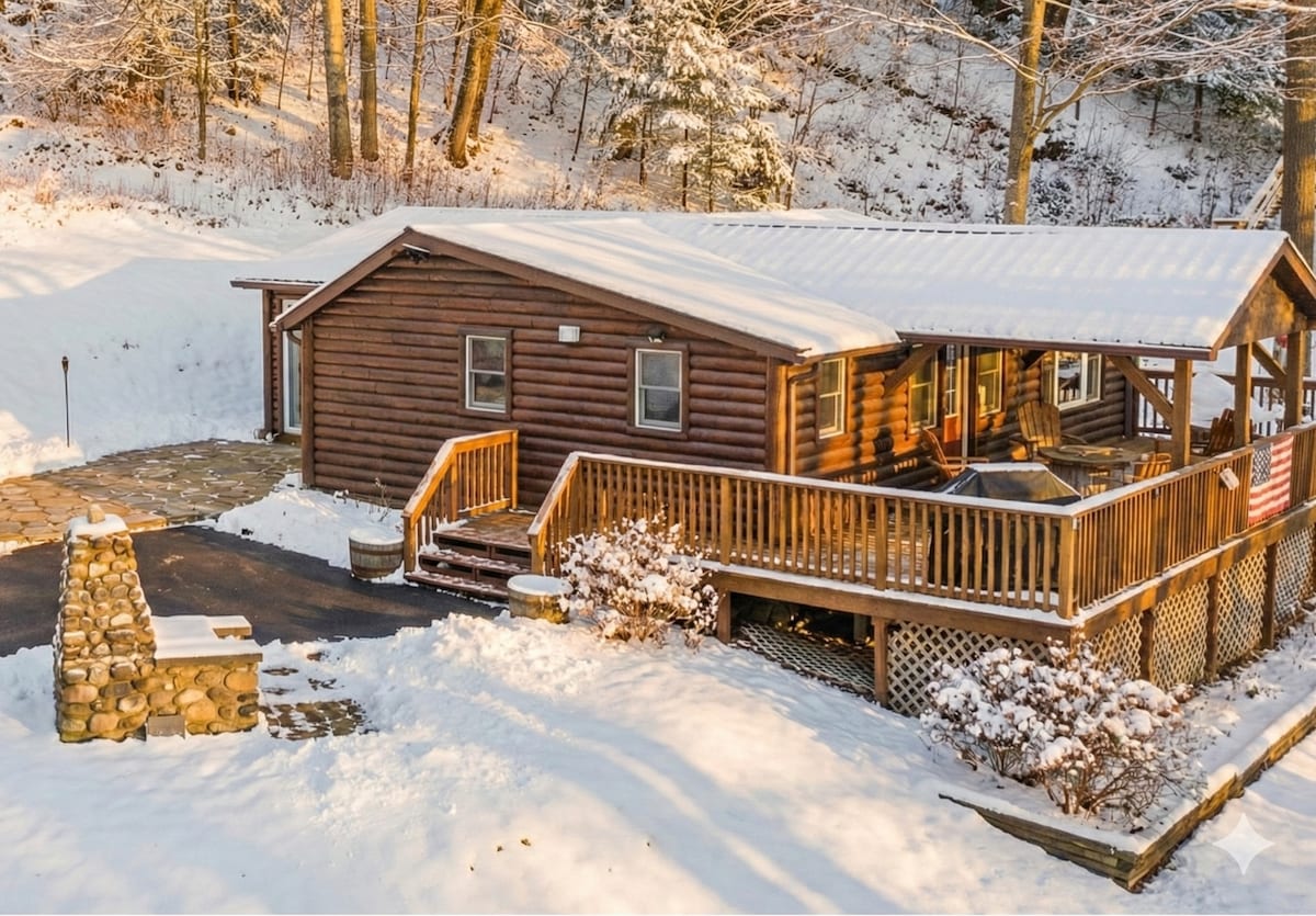 Year Round Waterfront Cabin-Secluded-Private Dock *Brand New Hot Tub on the River* 5 star cleanliness rating 3 bedrooms-3queen beds with Casper mattresses Hotel cot can be placed in any room Pull out sofa All fresh pillows, comforters, mattress pads, linens for each reservation 100% cotton sheets, towels 20 minutes to Saratoga and Lake George An oasis for year round fun Beautiful deck, fire pit, private dock-kayak + canoe provided Central air, heat, and a cozy fireplace $100 per dog