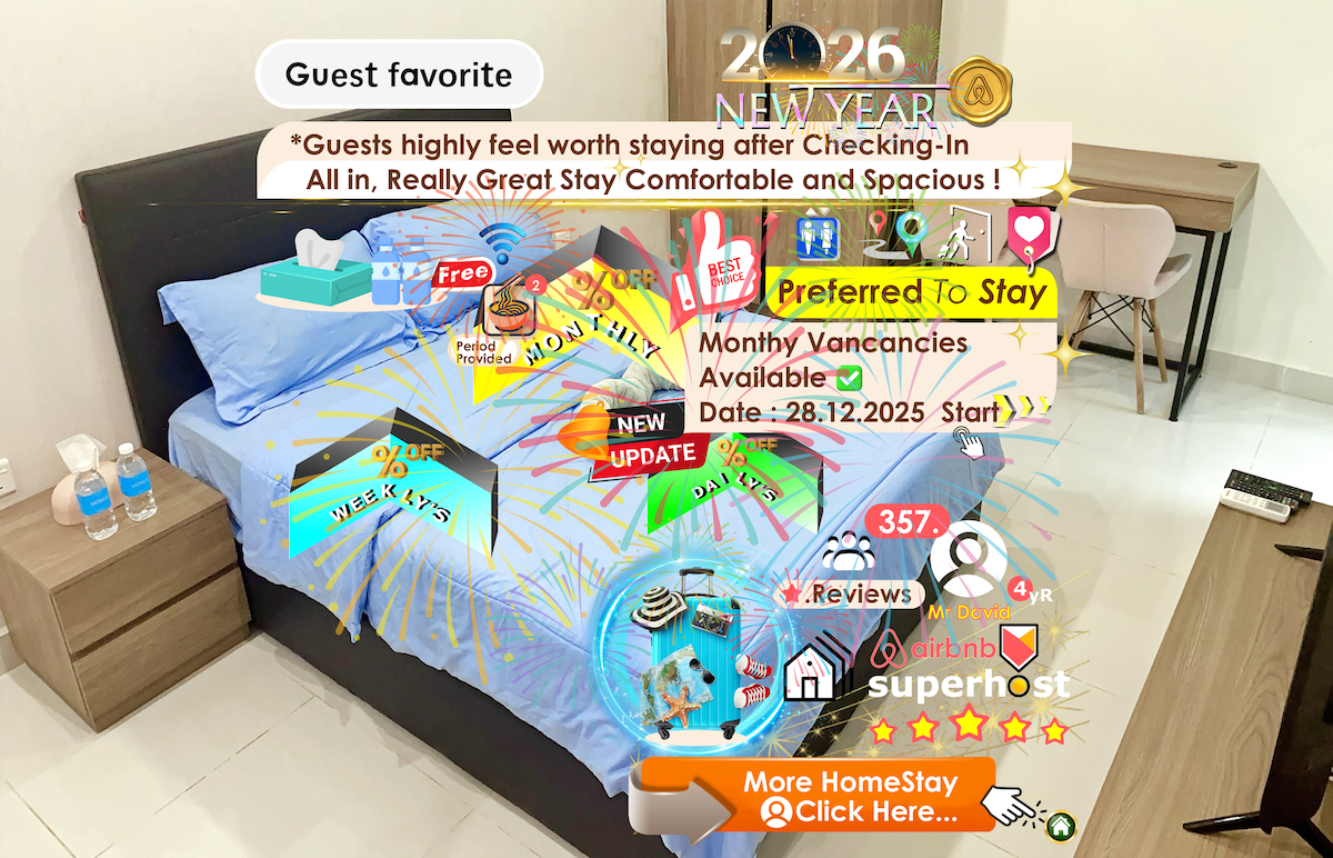 Our homestay is located above VivaCity Megamall, the largest shopping mall in Kuching. You can access the mall directly just by going downstairs Additionally, we are in a prime location, making it very convenient to visit various attractions in Kuching. Our homestay is on the 13th floor, offering beautiful views and facing a residential area, allowing you to enjoy a peaceful and comfortable environment.