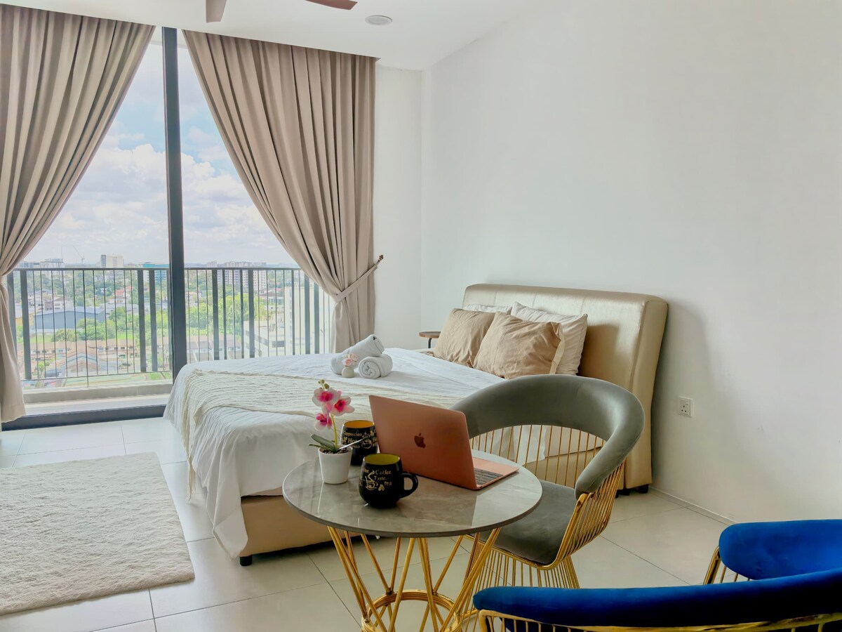 Experience stylish urban living in this elegantly designed Studio, where modern comfort meets serene ambiance & city charm. Situated in a peaceful yet vibrant neighbourhood, it offers a retreat while being close to airport, malls & City Center. Ideal place to relax&recharge, enjoy the panoramic Kuching City view from your private balcony. This studio w/ kitchen can accommodate up to 3pax, perfect for couple, business traveller & family. ★ Complimentary Parking (subject to availability)&Pool