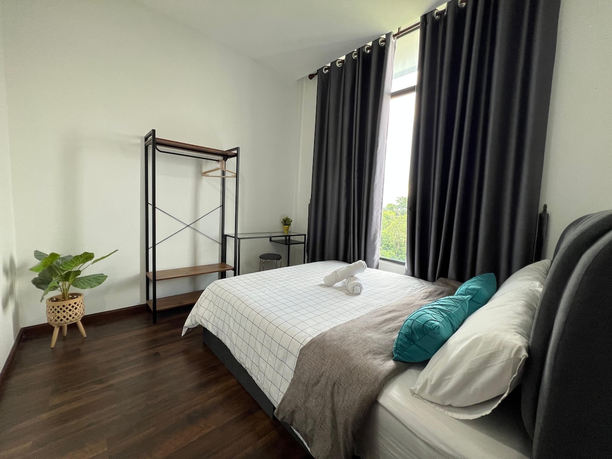 Relax with the whole family at this stylish minimalist home with stunning view of Kuching's iconic mountains. Located in a peaceful yet vibrant neighbourhood, this home offers a quiet & comfortable vibe. It's the perfect spot to unwind & enjoy nature while being close to airport, shopping malls & City Center. This studio w/ kitchen can accommodate up to 4pax, good for couples, business travellers, family & friends. ★ Complimentary Parking (subject to availability), Rooftop Pool & Gym Access