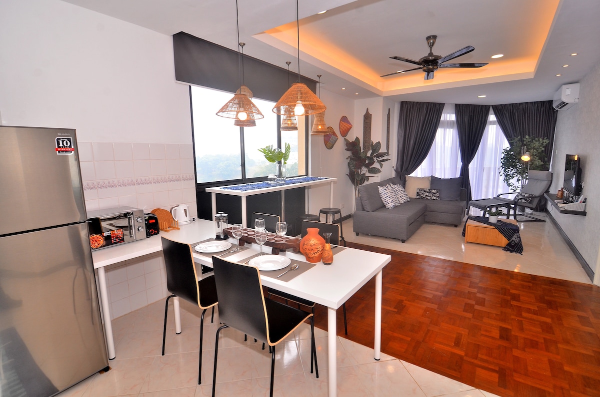 Your family will be close to everything when you stay at this centrally-located place.Our place is nestled within the Kuching Riverine Resort, providing its own scenic waterfront esplanade along the Sarawak River at Jalan Petanak.Our condo offers a relaxing retreat for your visit. Convenience is at your fingertips as our condo is just a stone's throw away from some of the city's most popular attractions, including the iconic Kuching Waterfront,Darul Hana Bridge, and the Borneo Cultures Museum.